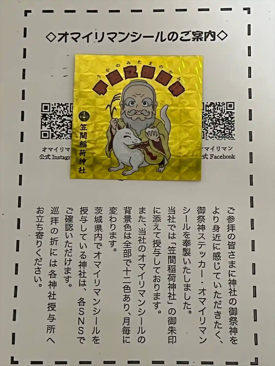 御朱印に付いてきたシール。