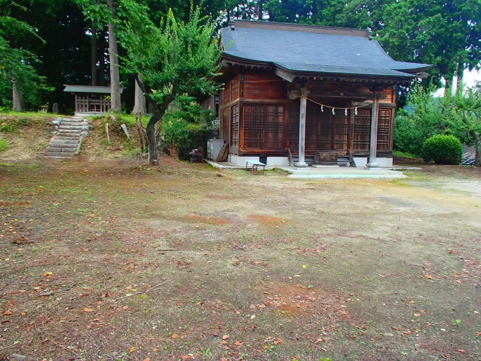 広い境内で、周囲の草刈りと掃除をした跡があり、もしかしたらここで夏祭りとかするのかなと思いました。