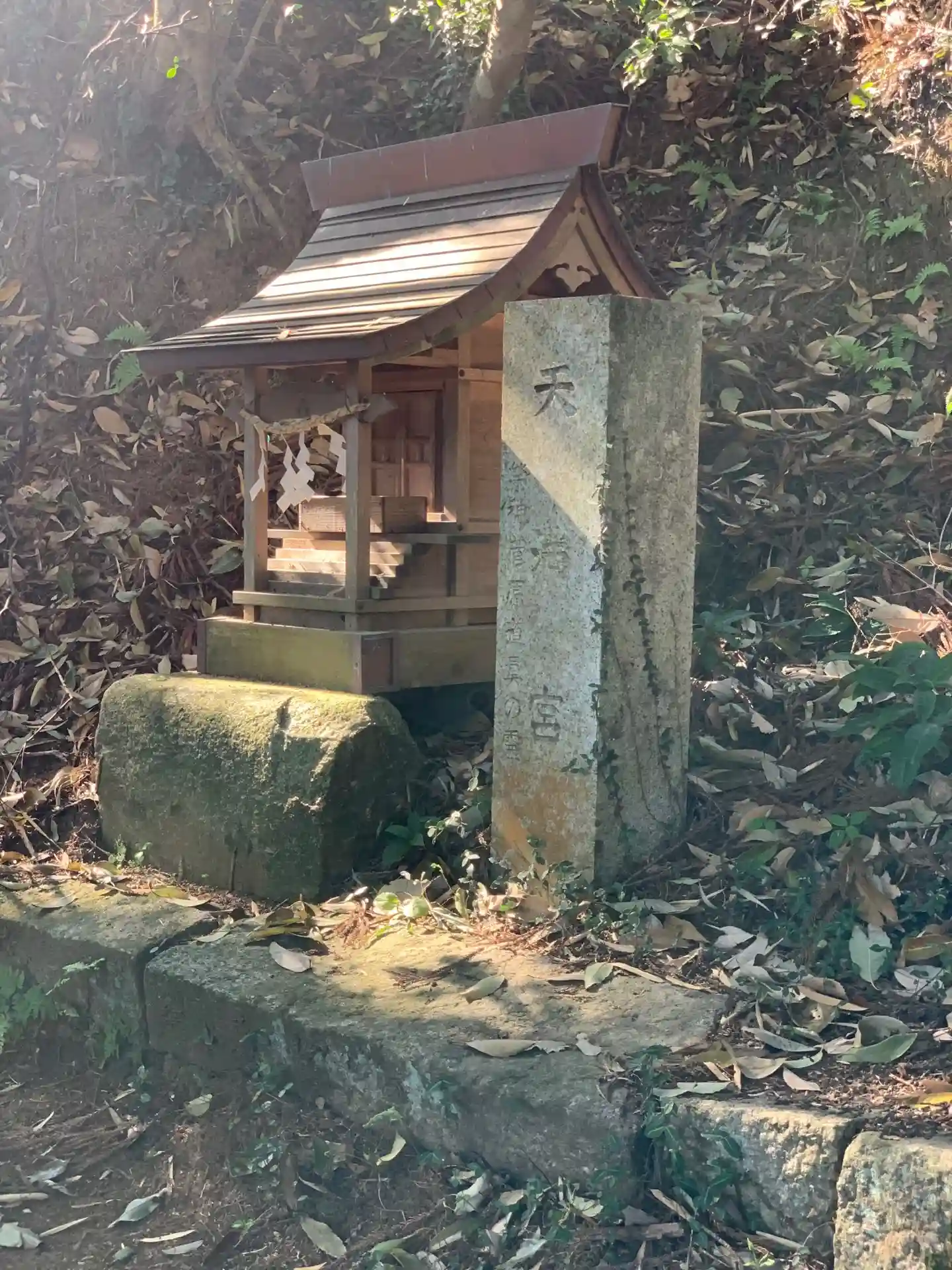 巨木の袂にある<脚摩乳(あしなづち)神社>。祭神の奇稲田姫命の父親。こちらも『日本書紀』の表記で、『古事記』だと「足名椎命」。