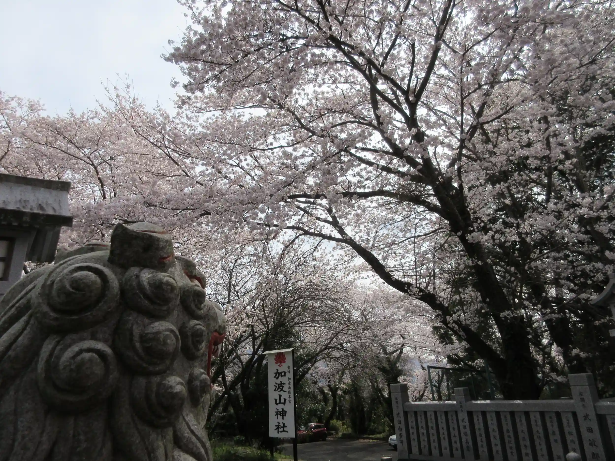 水戸での桜巡りを諦めきれず、水戸じゃないけどここならと思い六番目に訪れたのは😅今回で2度目の加波山神社真壁拝殿😔半分あきらめ状態で行きましたが、駐車場に着いてびっくり😂😍⤴️⤴️🌸なんと桜が満開!🌸大当たり!😍⤴️⤴️いいロケーションはないかとかなりの枚数の写真を撮りまくりました😂おかげでバエル写真が取れました😂よかった!😌前回は社務所が開いてなく、御朱印をいただけなかったので今回はいただけてよかったです😉書置きじゃないですよ😃