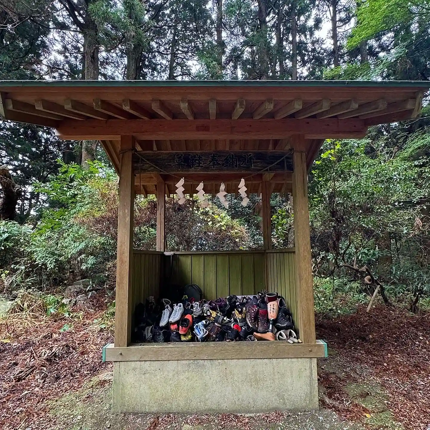 足の病気や怪我、安全を願い靴や義足を奉納する奉納所