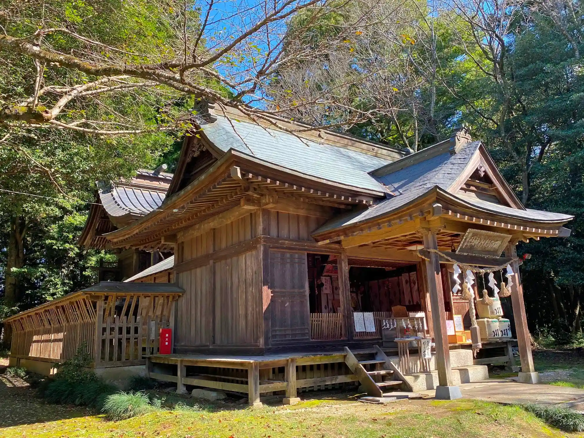 <拝殿>全景。せり出た庇が大きい。