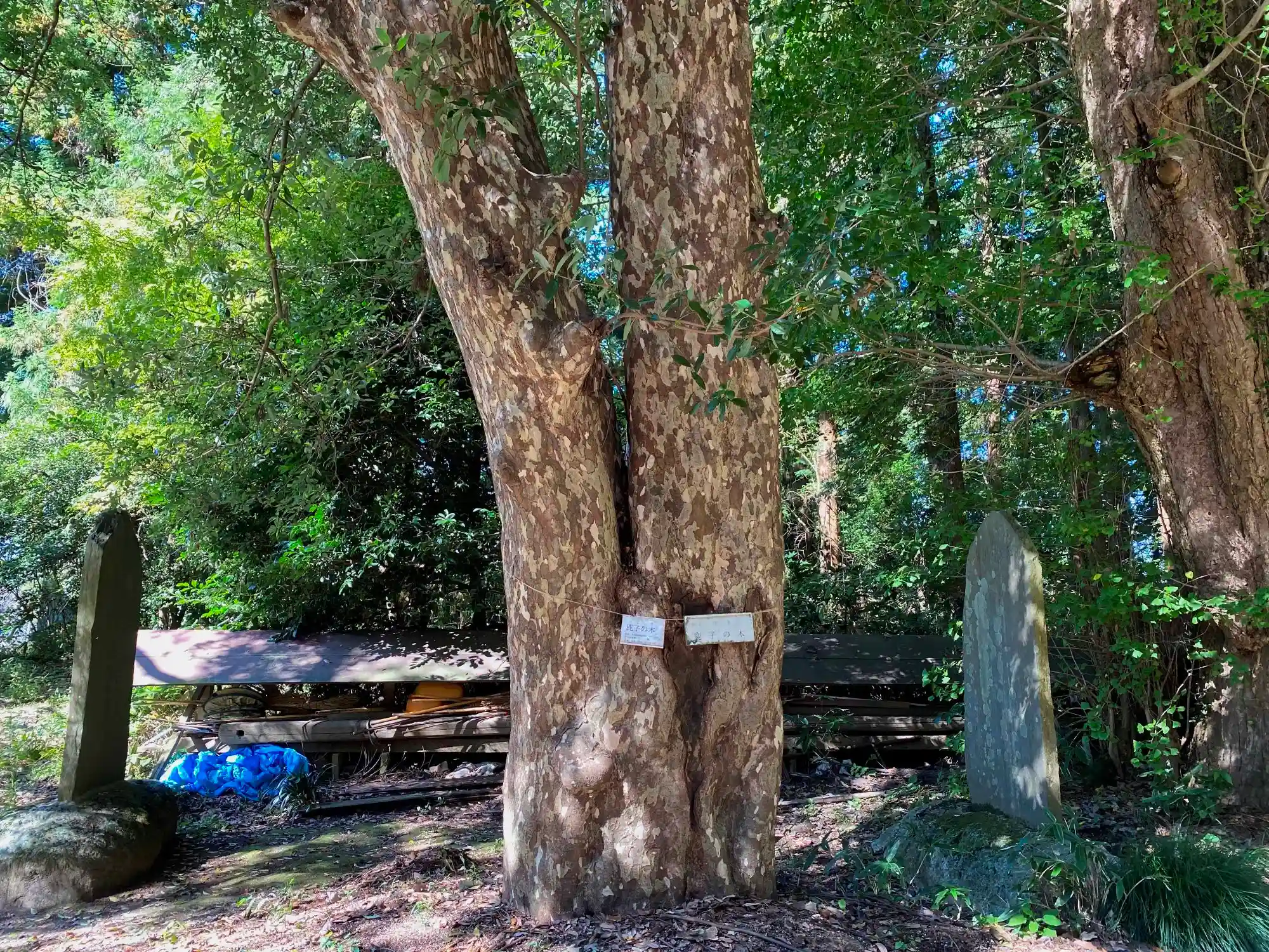 ここから社殿周りを見て廻る。まず、まだら模様が面白い<鹿子の木>。