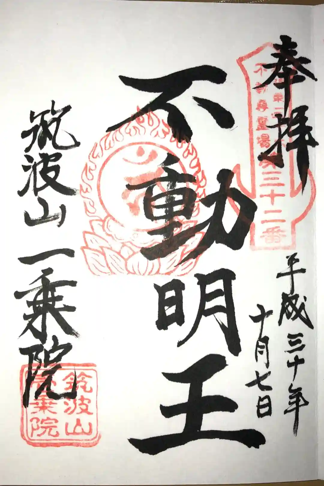 三十六不動尊の納経軸にいただいた御朱印です。