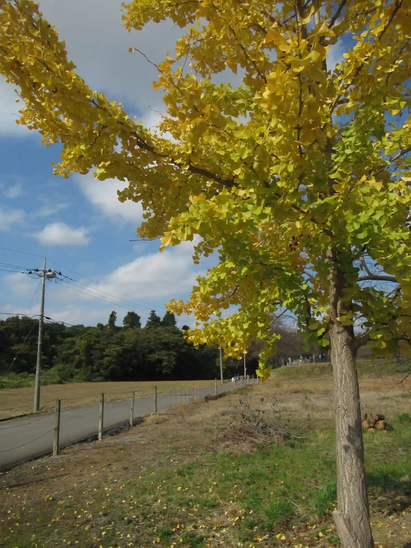 当日は雲が多いながらも、雲の白・空の青・イチョウの黄、と目に眩しくも、ココロが落ち着く眺め。