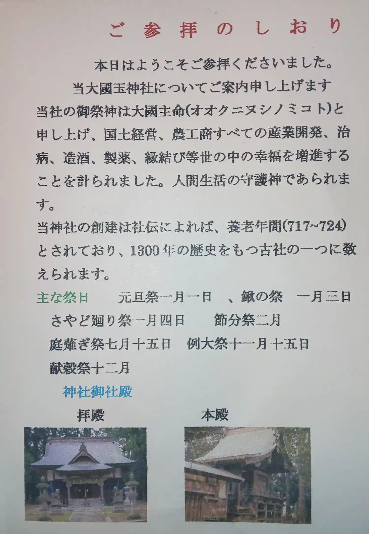 楽しみ方おおくにたまじんじゃ
