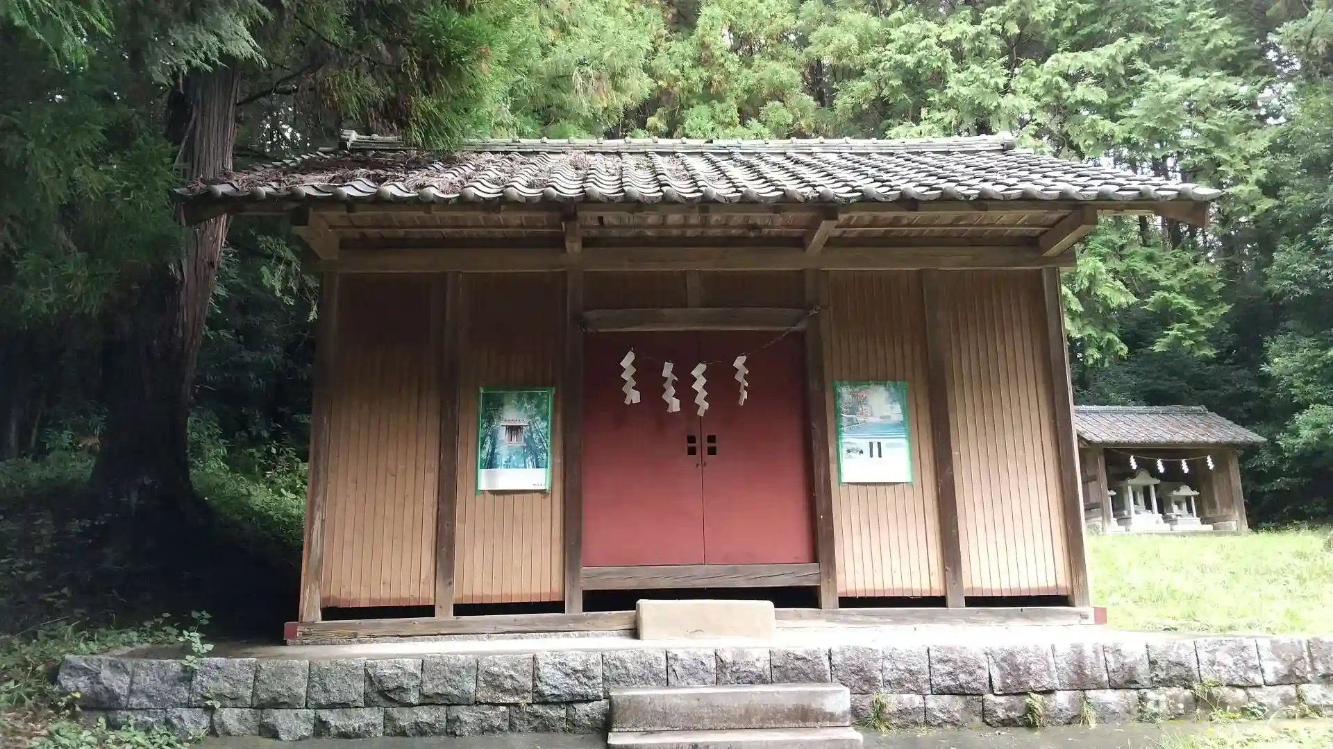 参道の途中で隣地の方が草刈りしていました。