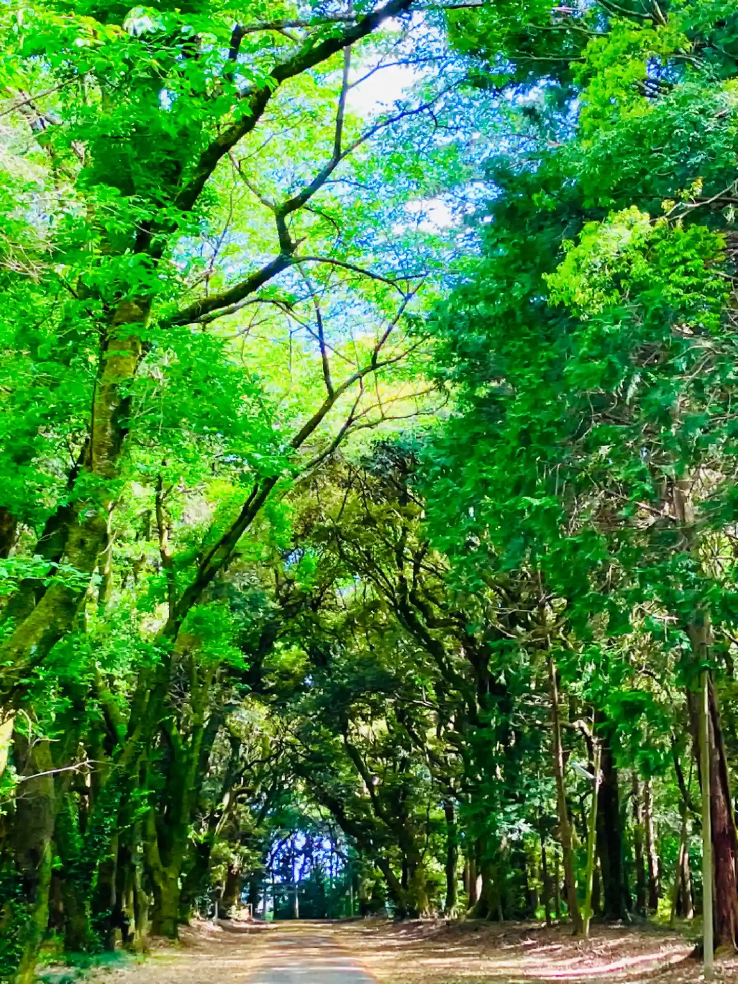 新緑がとても綺麗で、中でも長い参道を初めて歩いたら、木🌲🌿のアーチに風が吹いてとても気持ちの良いこと。。