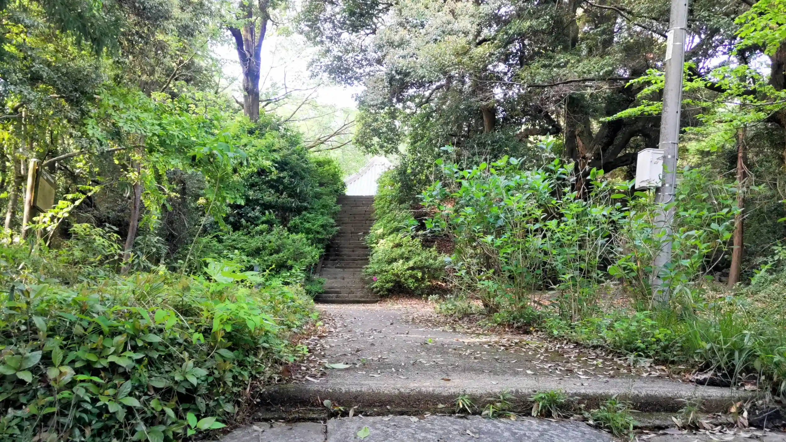 石段の左手を上がると仁王門と同じ高さくらいに駐車場があります。自然に囲まれ、熊が出そうな駐車場です。
