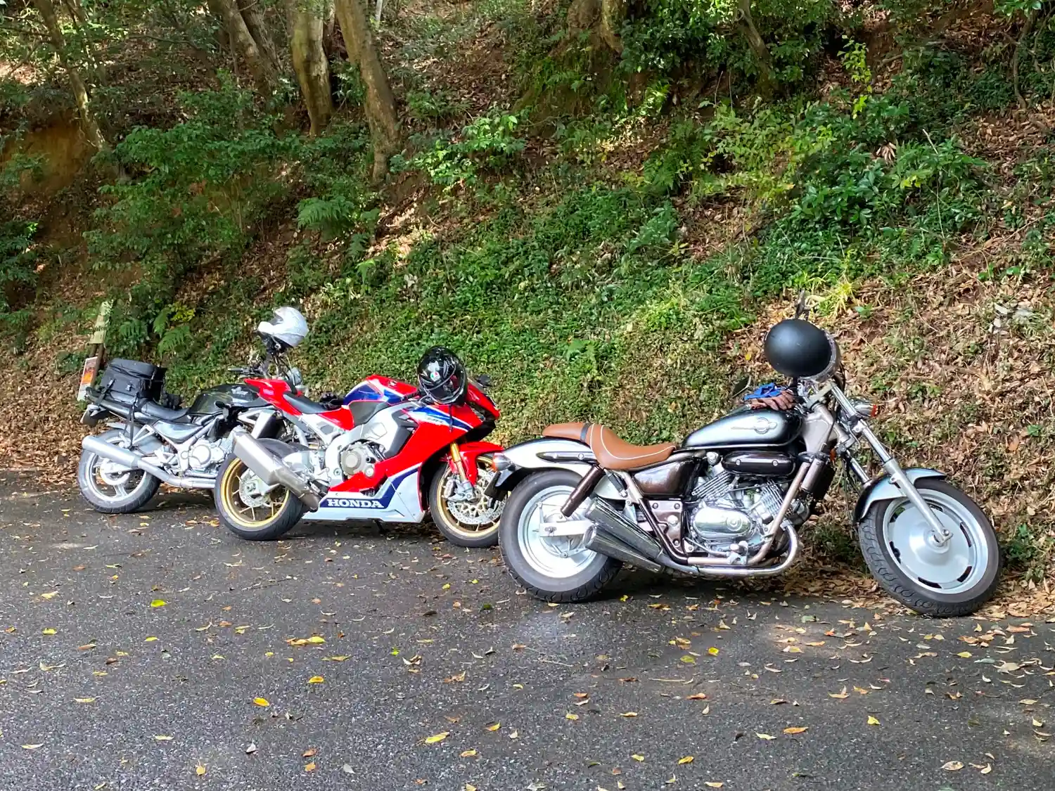当寺の駐車場でバイクを1台で停めていたところ、ツーリングライダーが自分の両側に停めたみたい。そんなに有名なお寺ではないが、ツーリングの目的地にもなるのかな? (^▽^)/