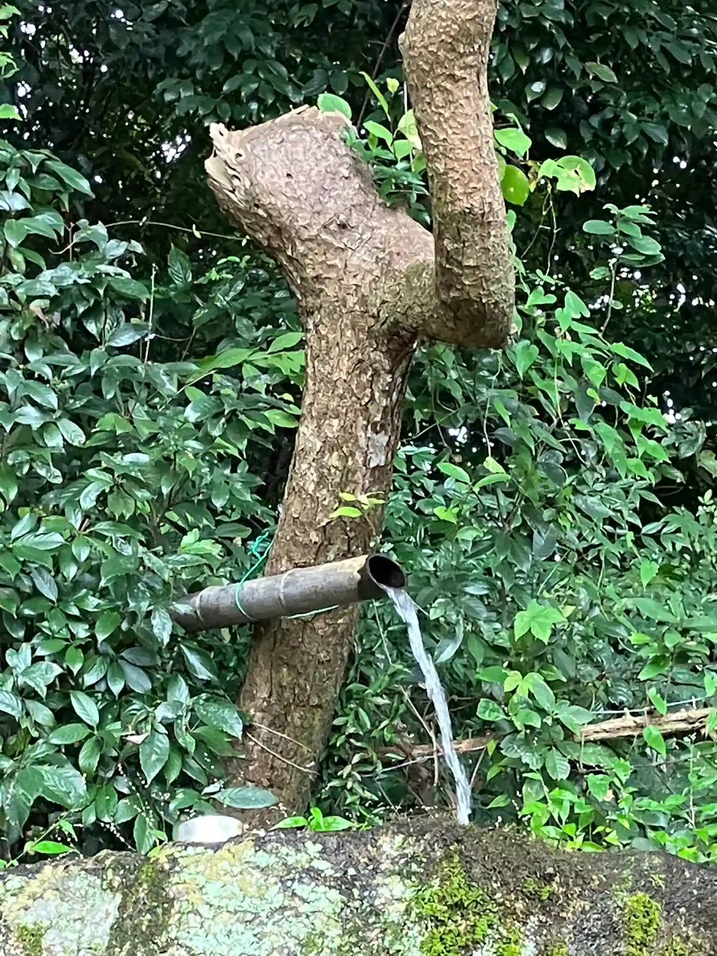 左に宝塔と古い手水