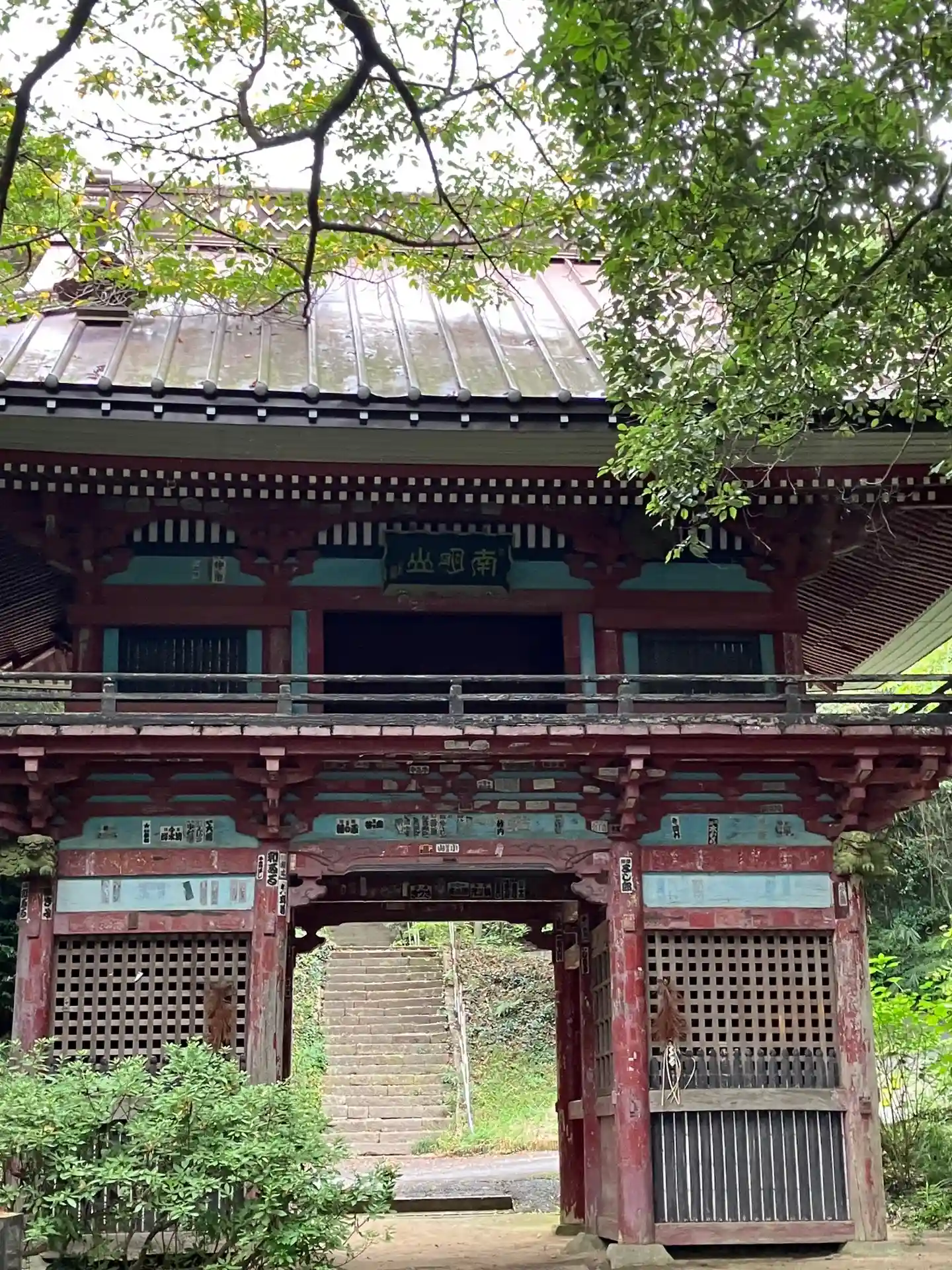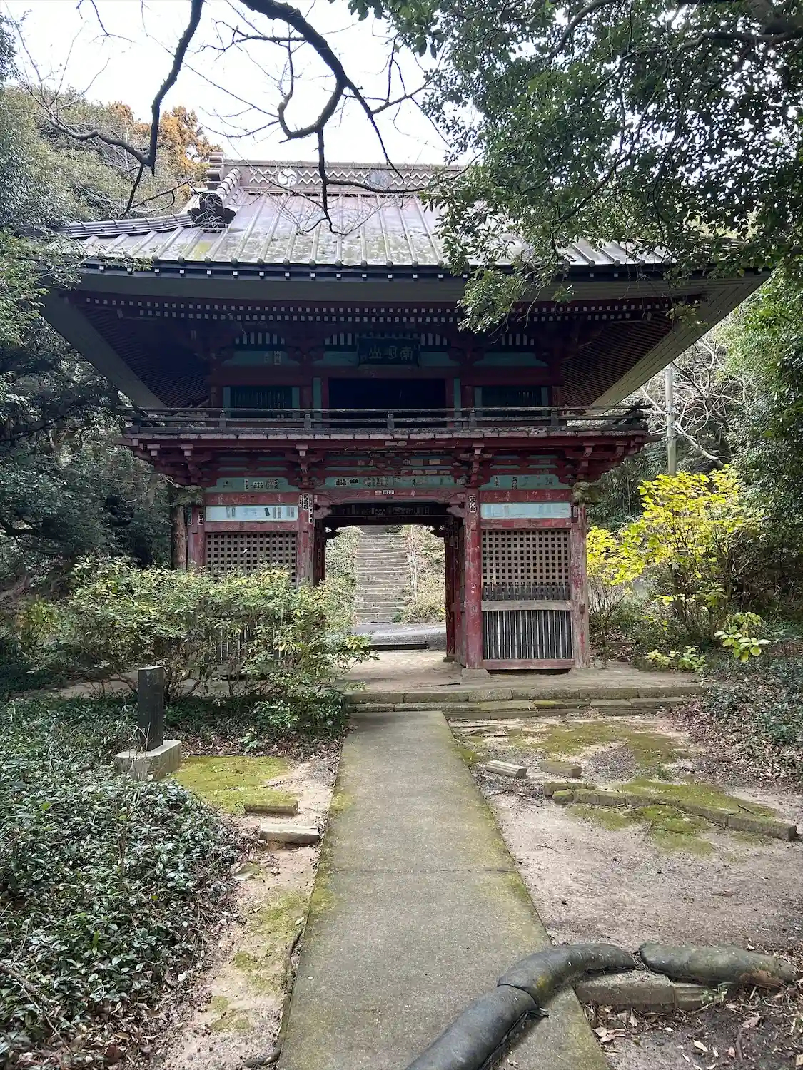 階段を上がると朱塗りの大きな仁王門