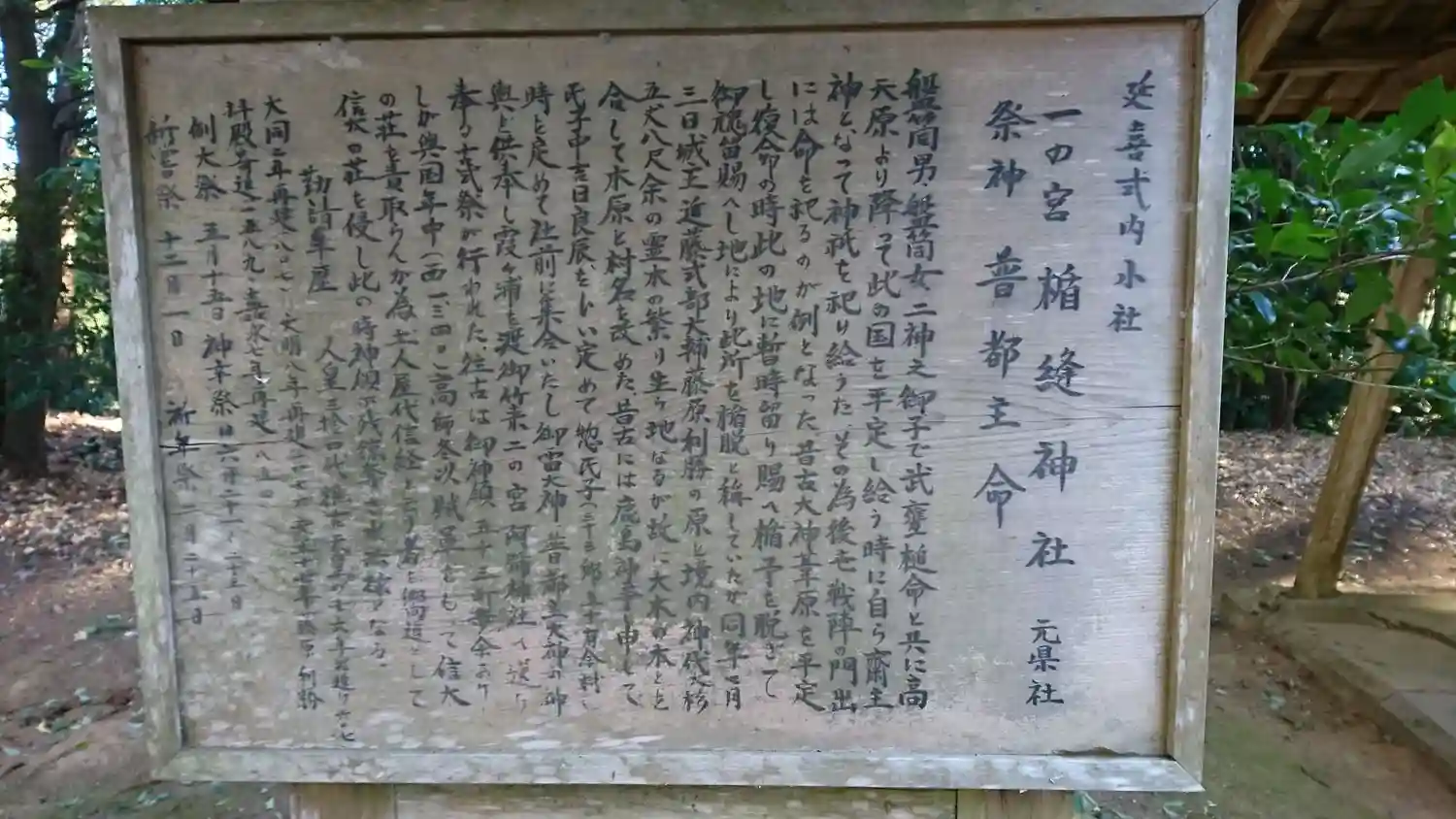 | ご祭神 | 《主》経津主命,《配》彦狭知命,大己貴命,宇蒼魂命,市杵島姫命,須佐之男命,神皇産霊命,熊野加夫呂岐命 |