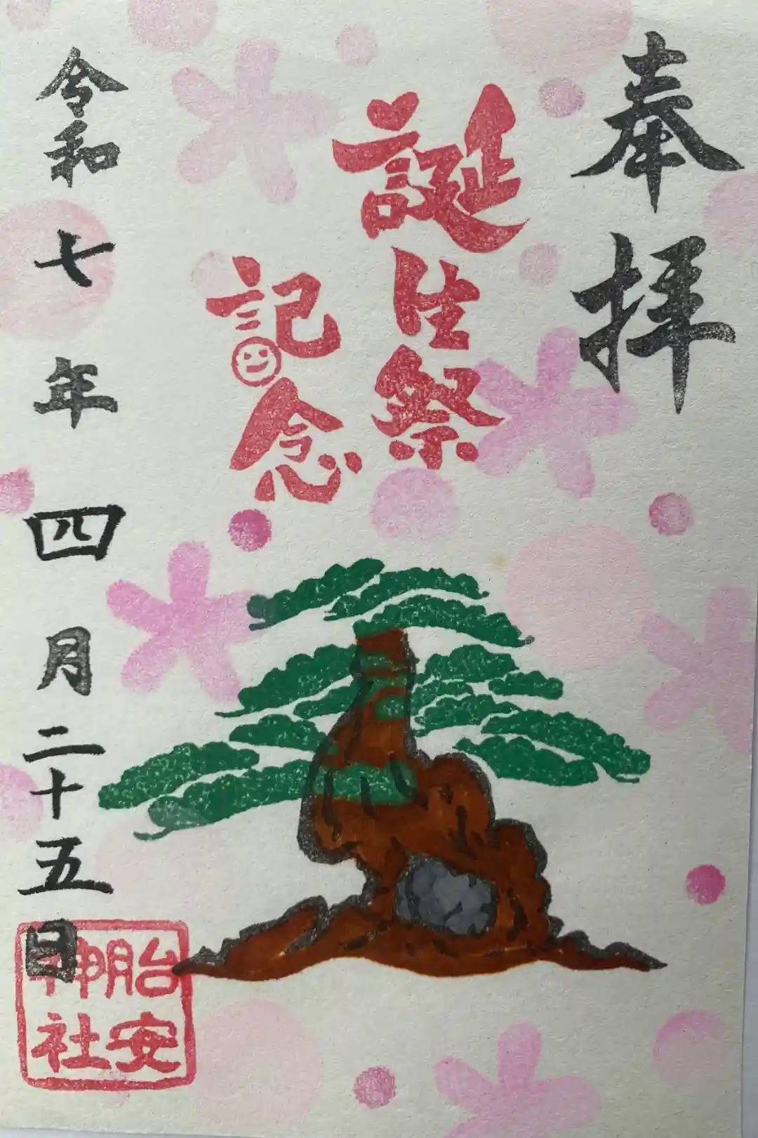 誕生日御朱印には、記念品として、カードタイプの桜柄幸守り・手作り栞・メッセージカードをお付けします。