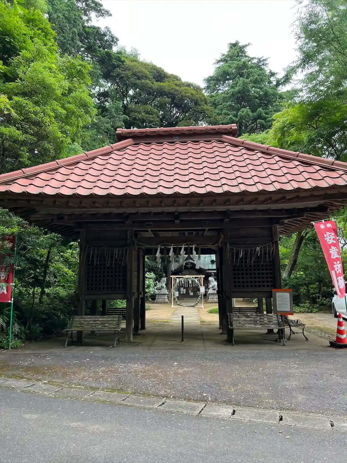 子安神社の後に参拝、インターホンを押すと宮司が来て書置きに日付を記入して頂きました。こちらも森の中…