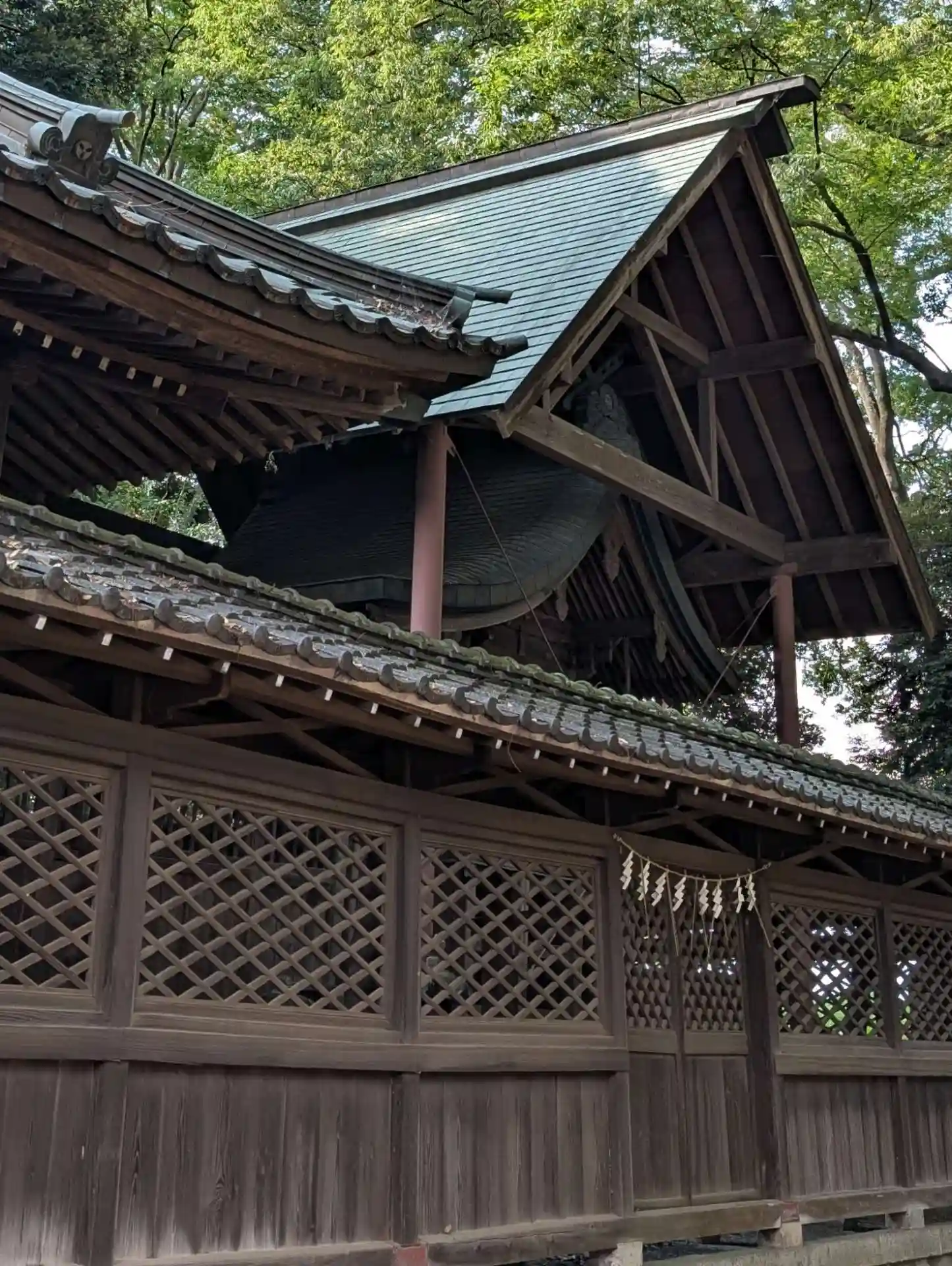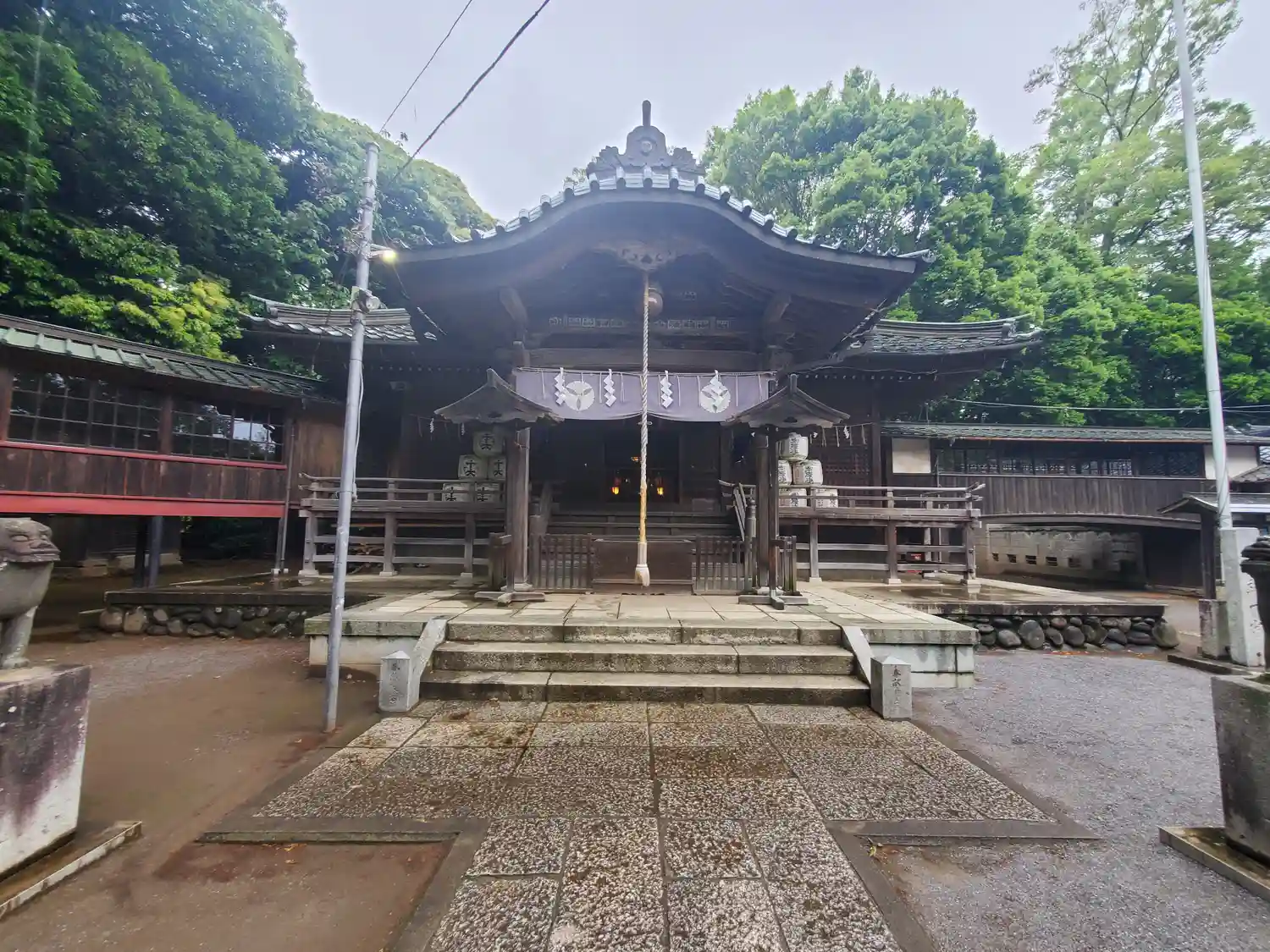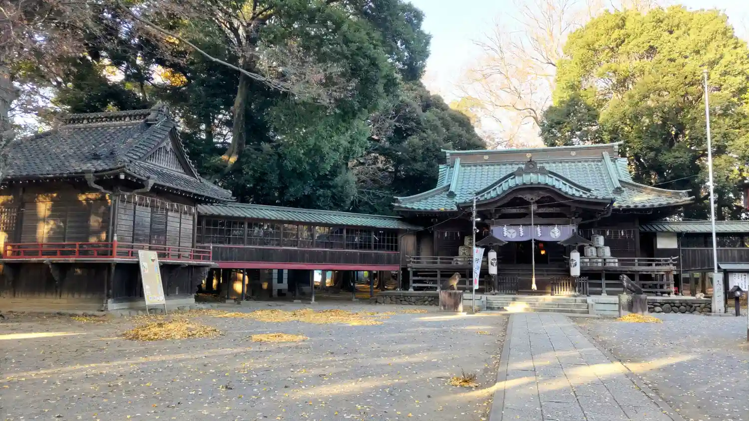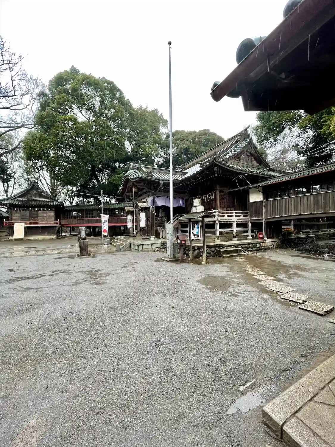 渡り廊下が張り巡らされて神楽殿や社務所に繋がってる