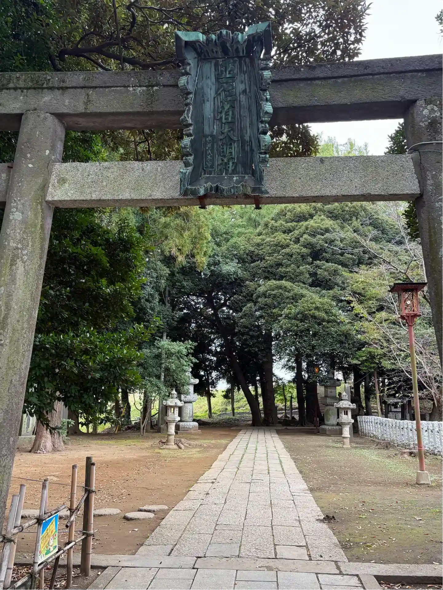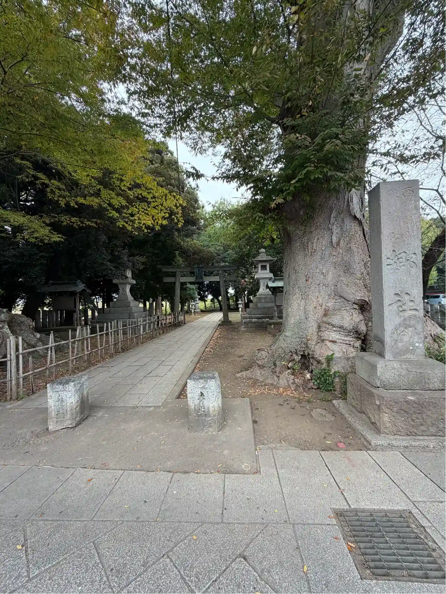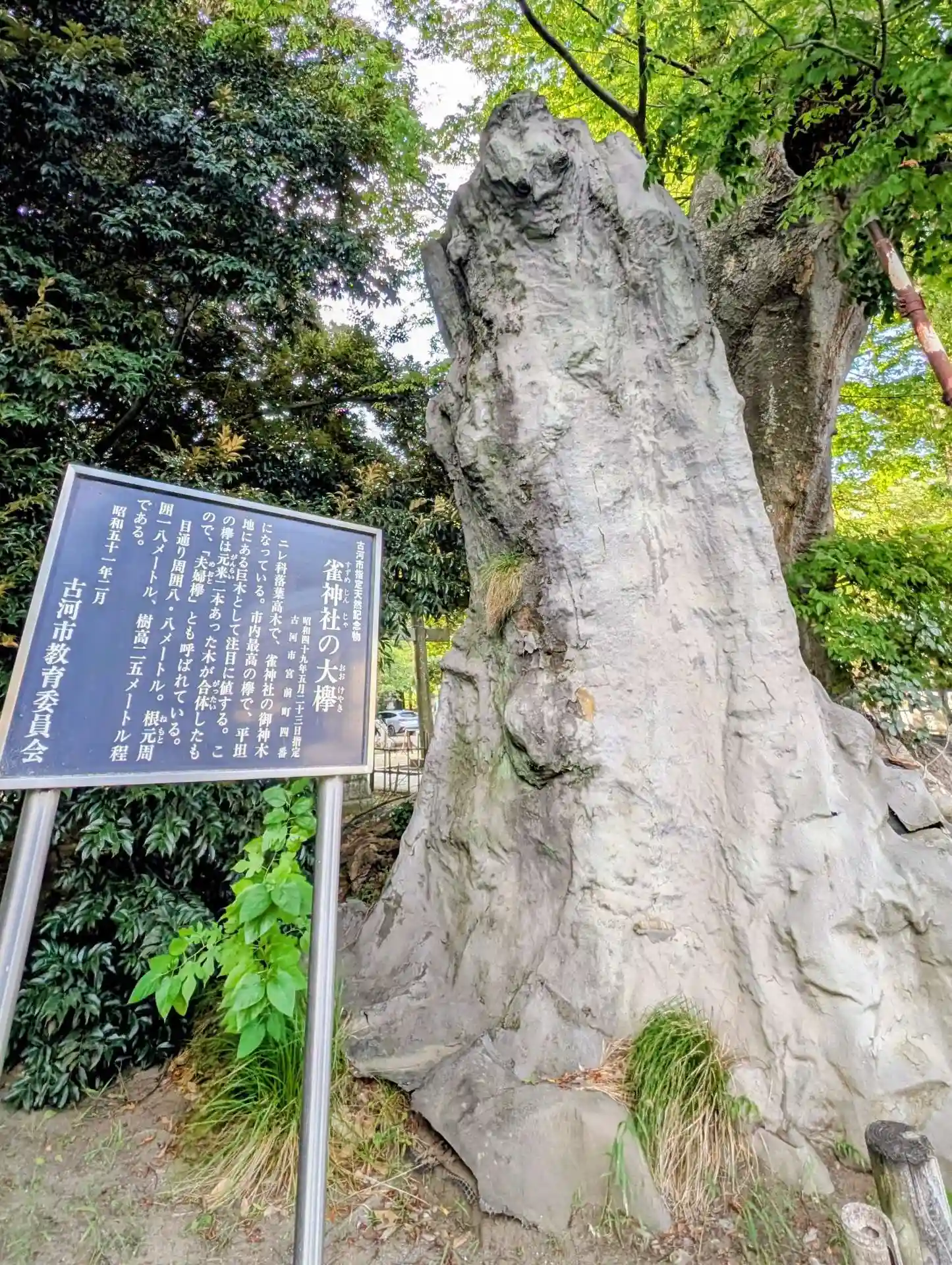 社号標の裏に巨樹