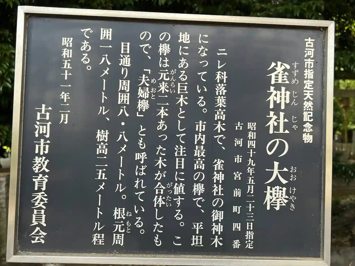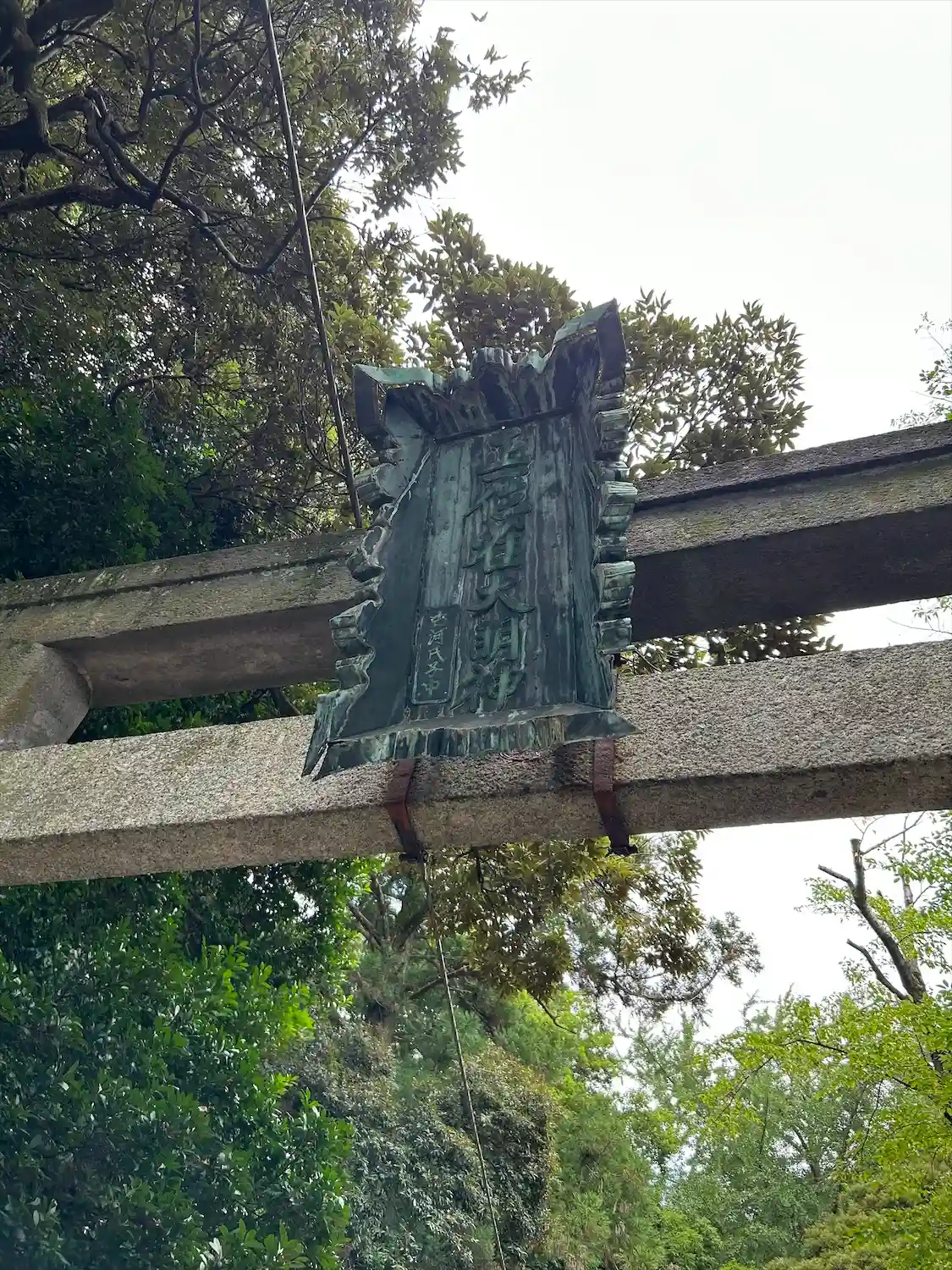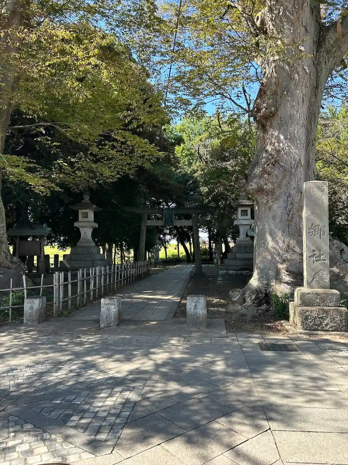 社号標の裏に巨樹