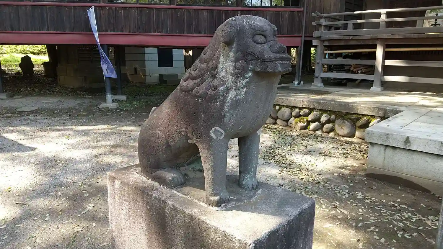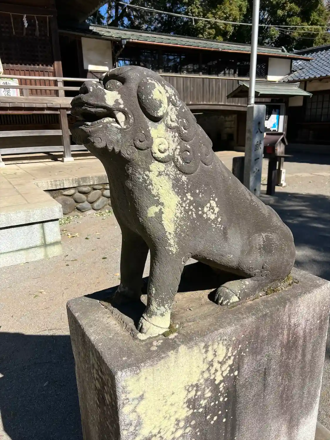 右の狛犬。真横を向いてます