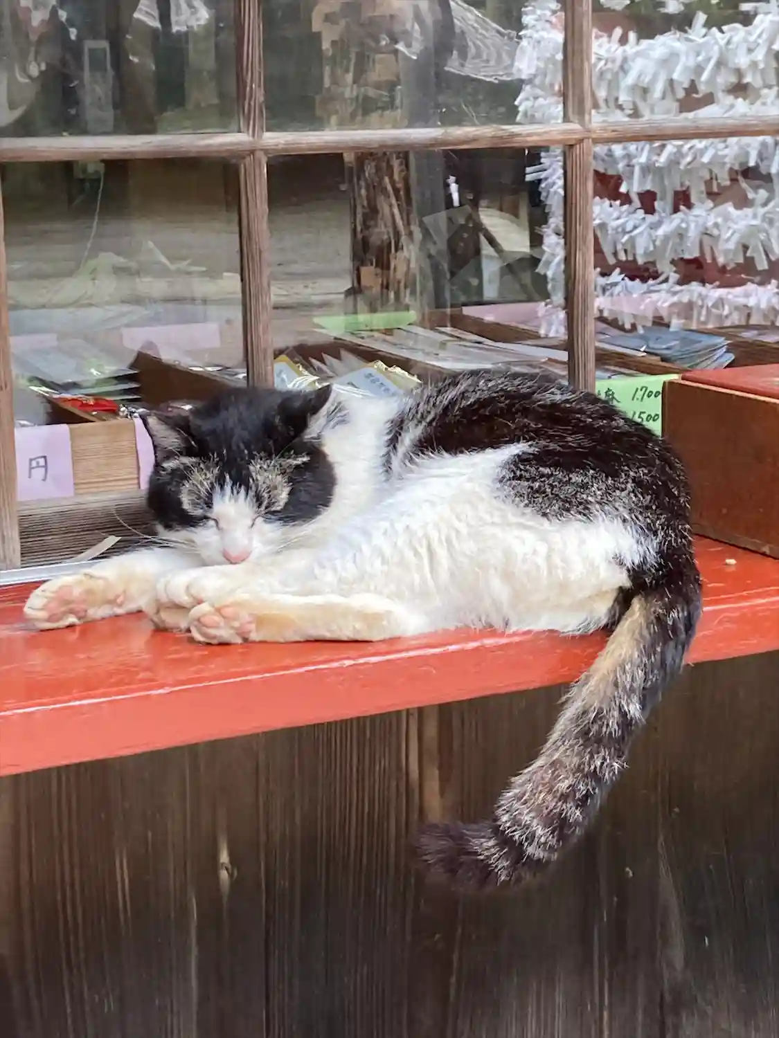 社務所で迎えてくれる猫ちゃん。ずーーーっと体舐めてました😋