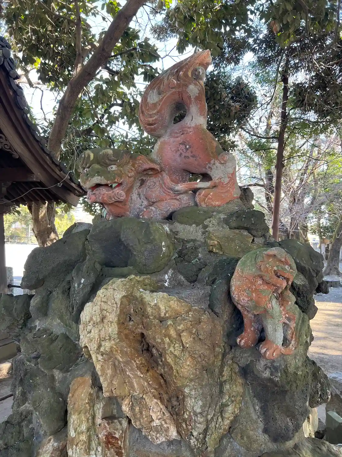 珍しい赤い狛犬