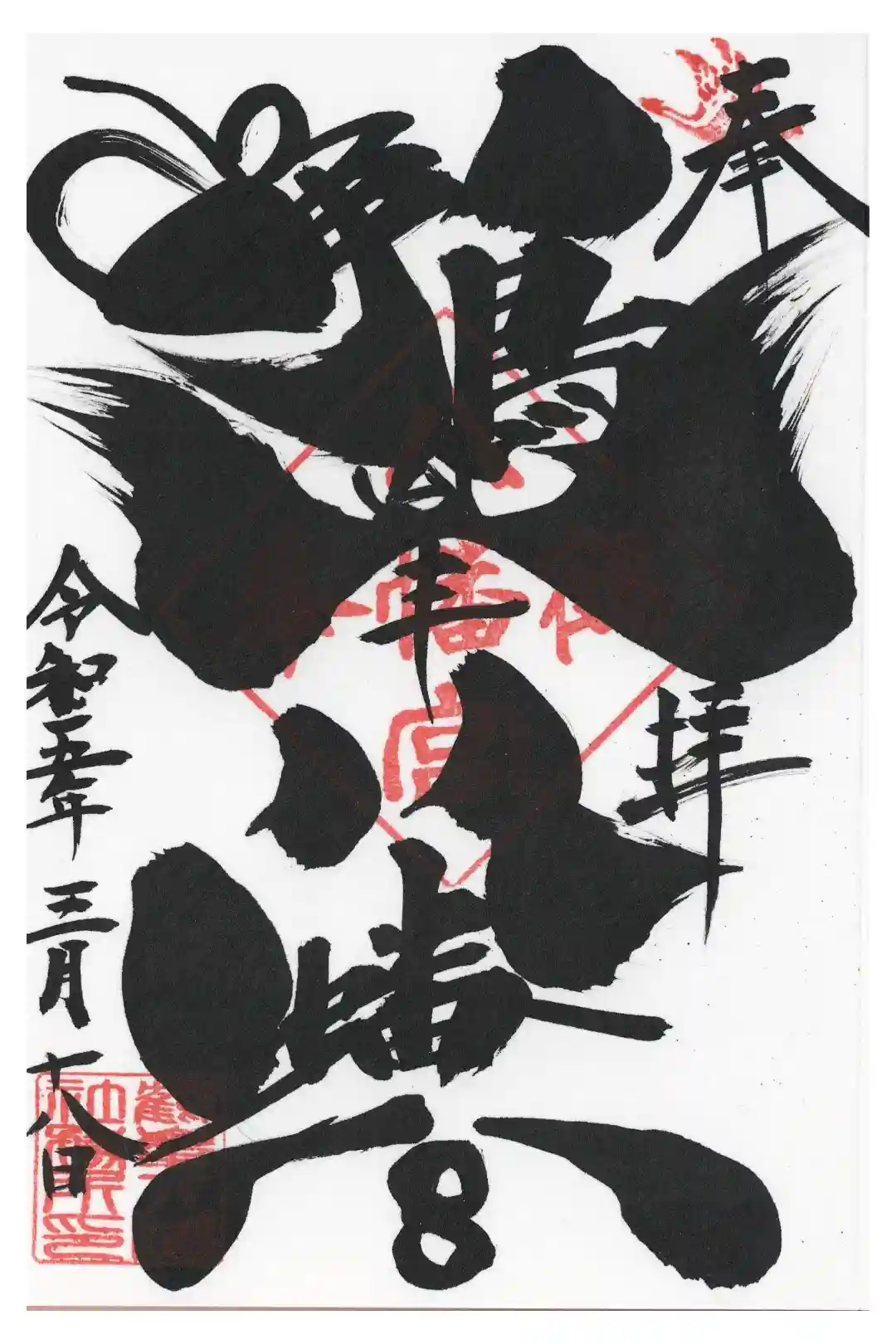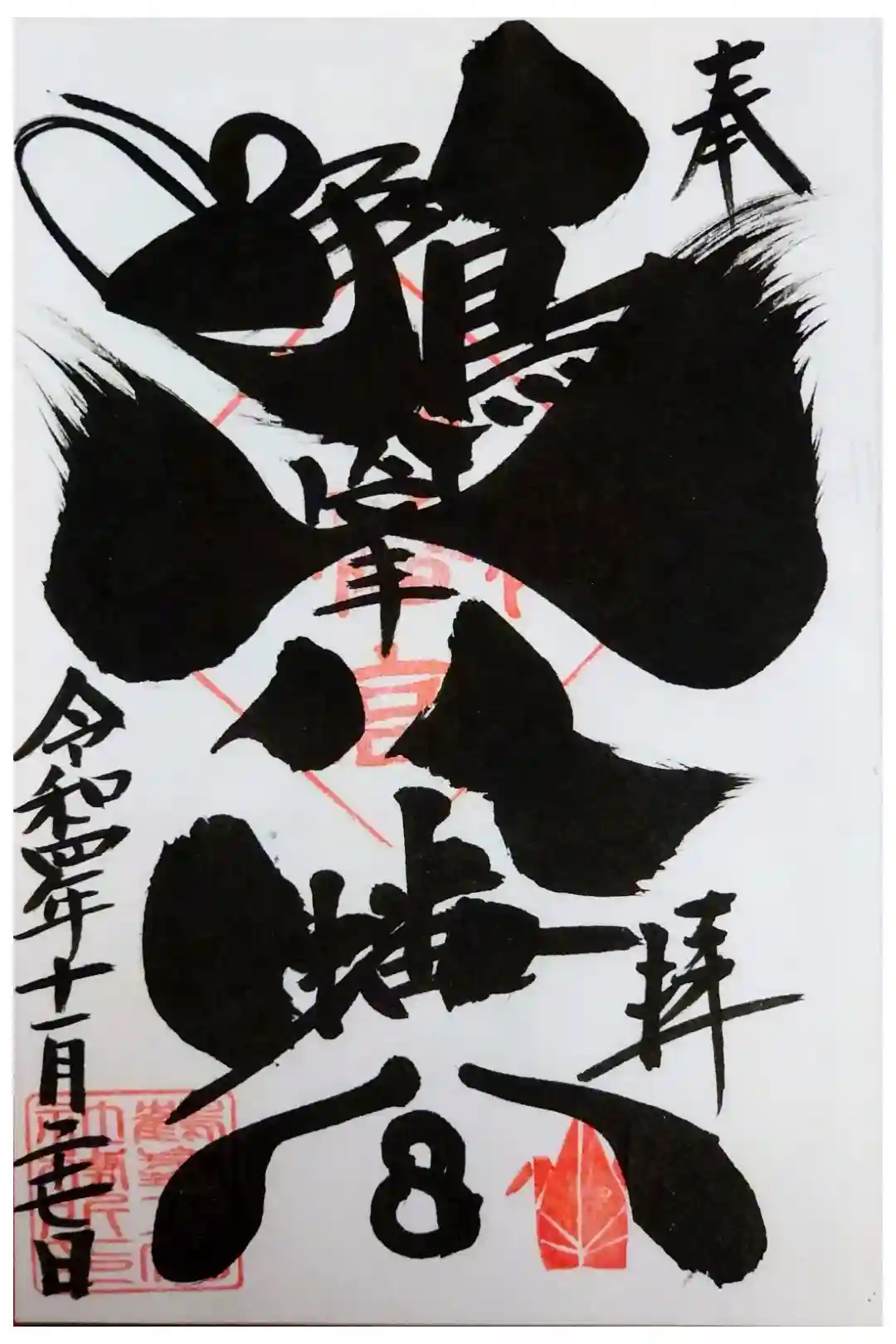 鶴峯八幡宮の御朱印 豪快で芸術的な書体