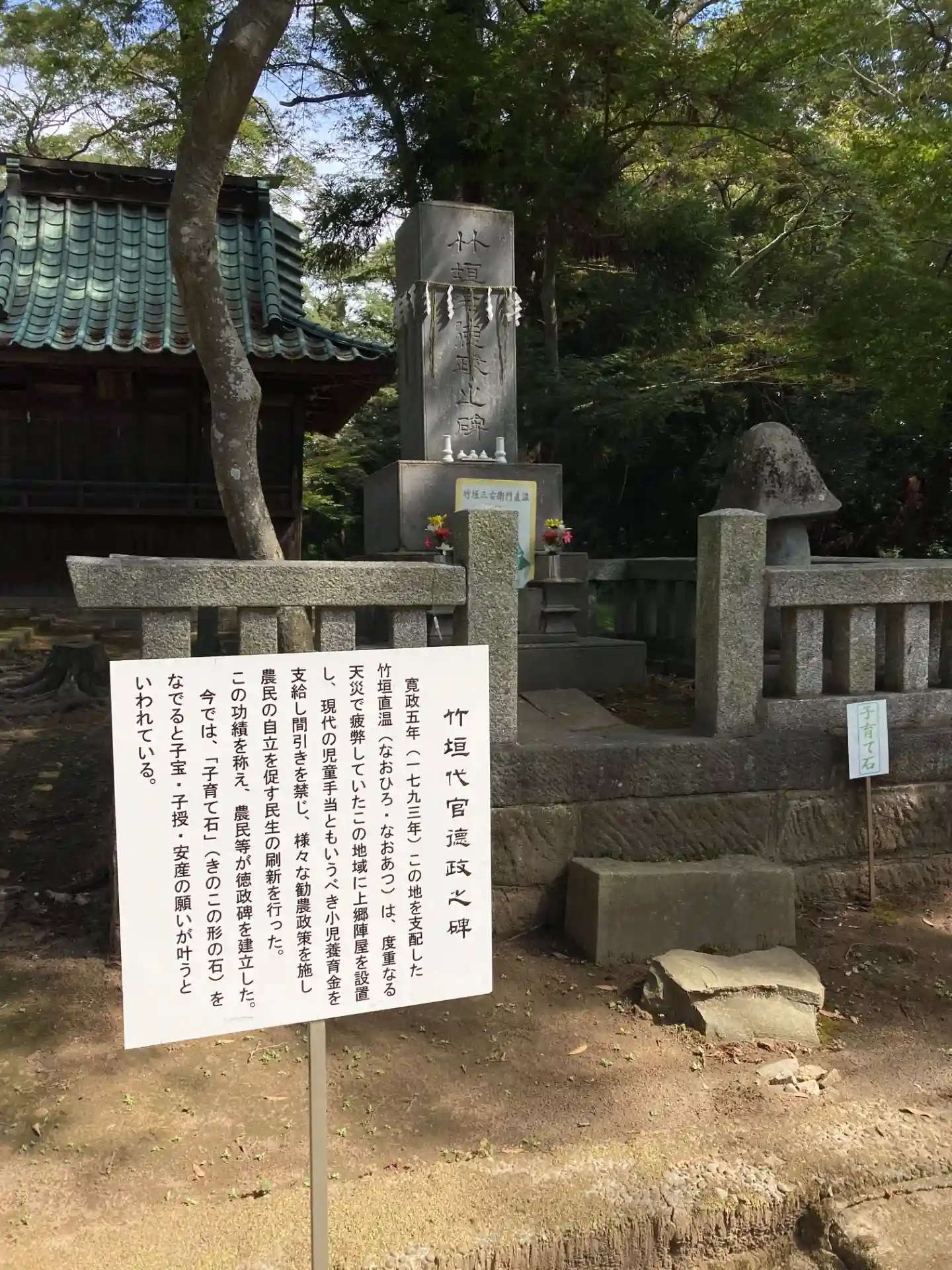 右のキノコ形の石は「子育て石」で、撫でると子宝、子授、安産にご利益があるそうです。