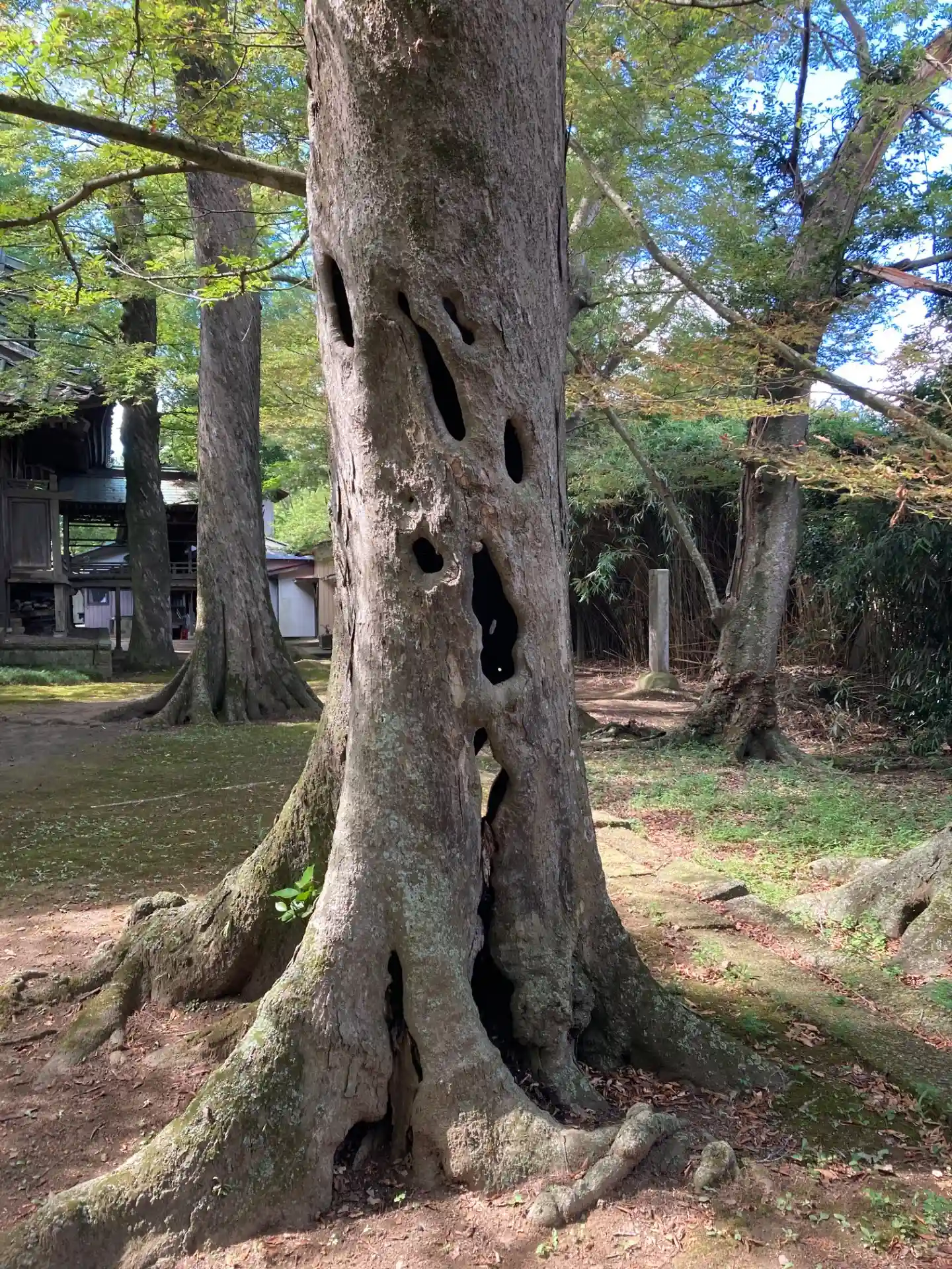 太い木は中が空洞で側だけで立っている