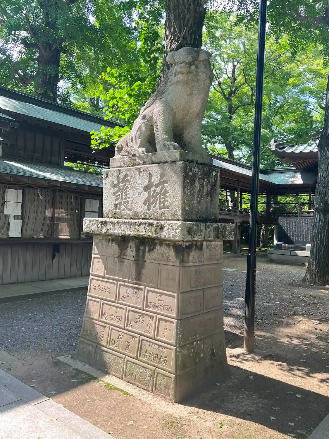 本当に暑い日で蝉の声が降り注ぐ中、参拝しました。立派な鳥居と狛犬、拝殿、整備された綺麗な神社でした…