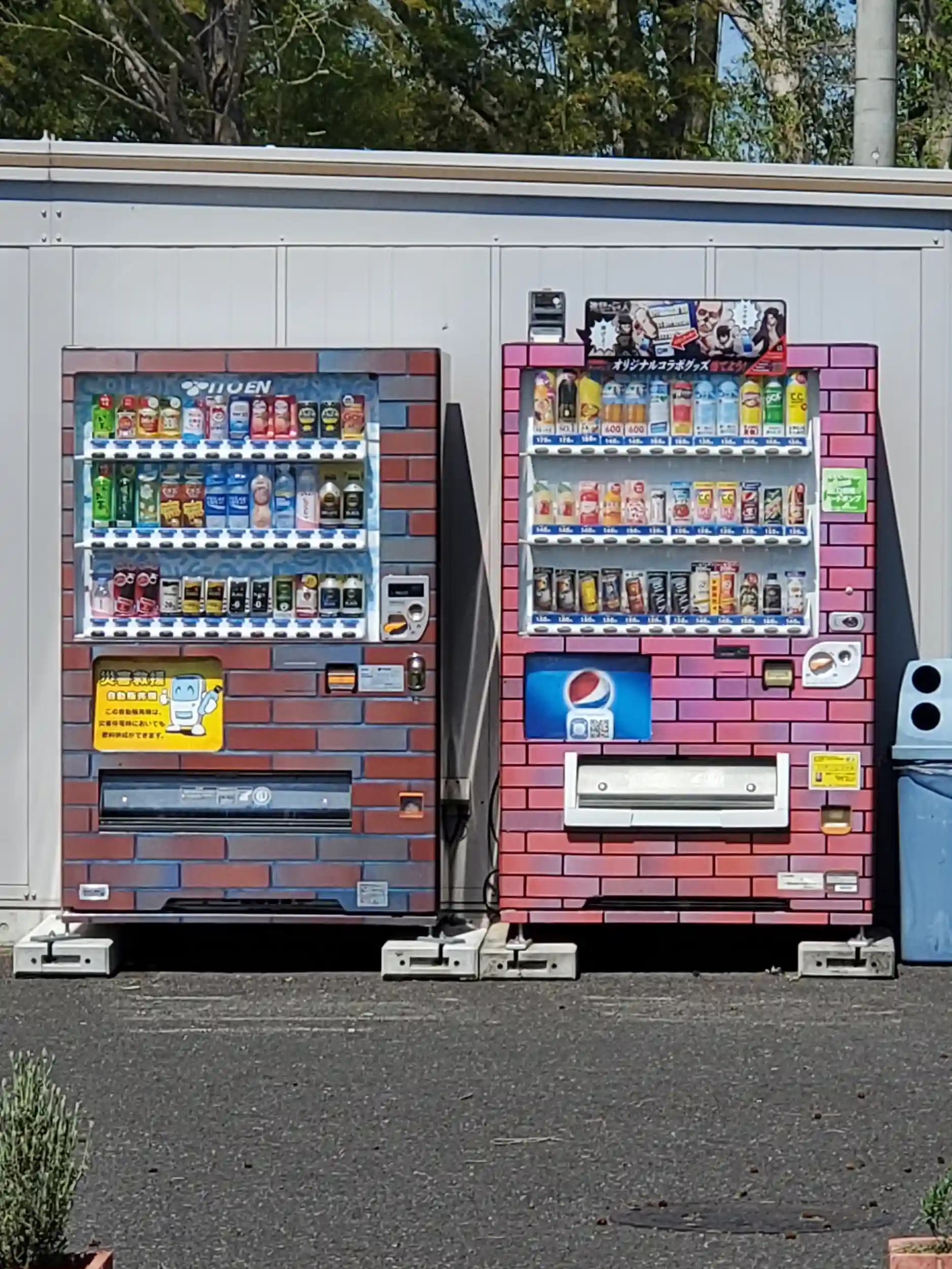 販売機もレンガ模様