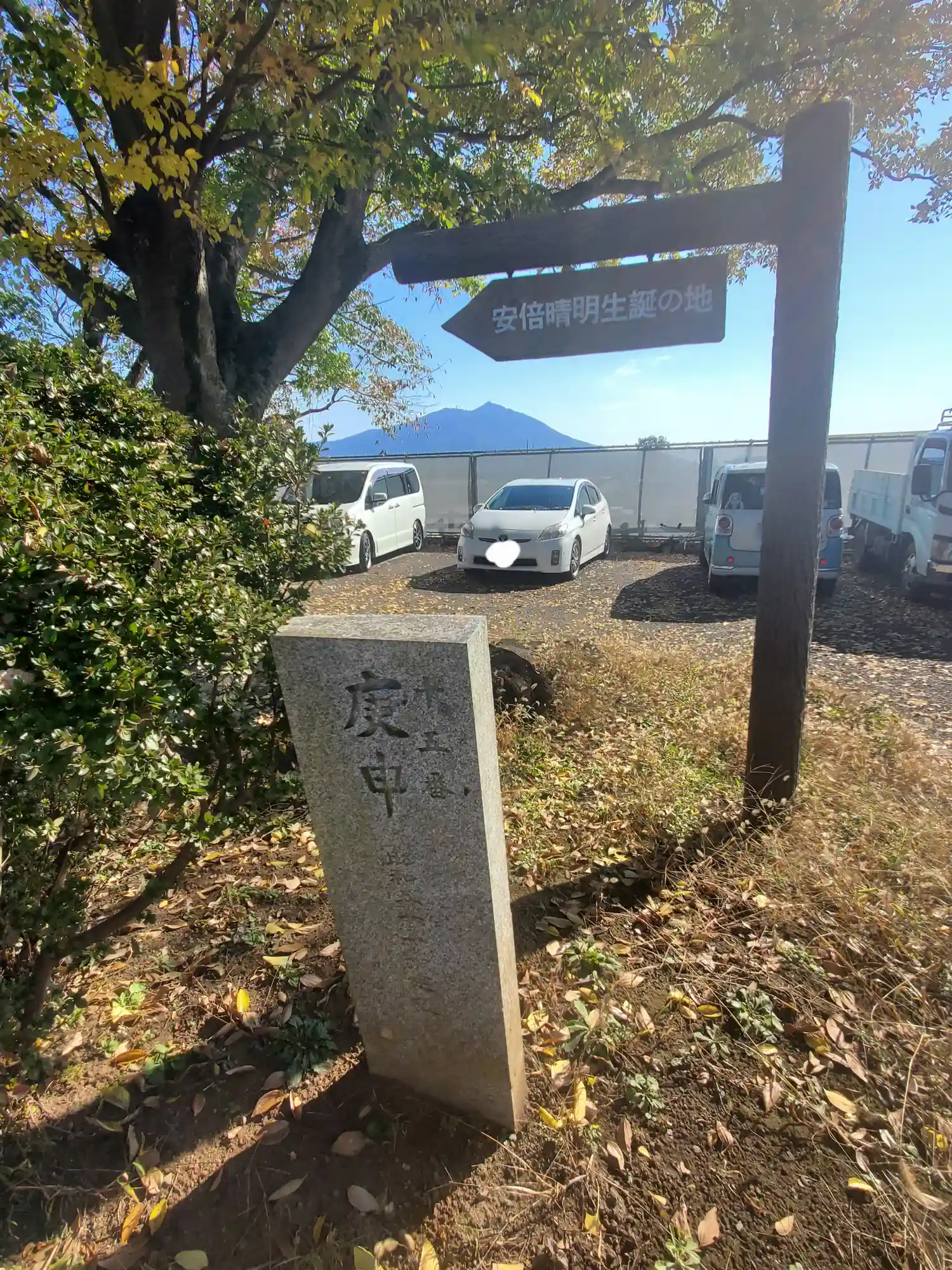 晴明生誕地の方は・・・どうも隣に工場でも立つのか何かの工事中で、4台分しかない駐車場の3台を工事業者が占領(>_<)