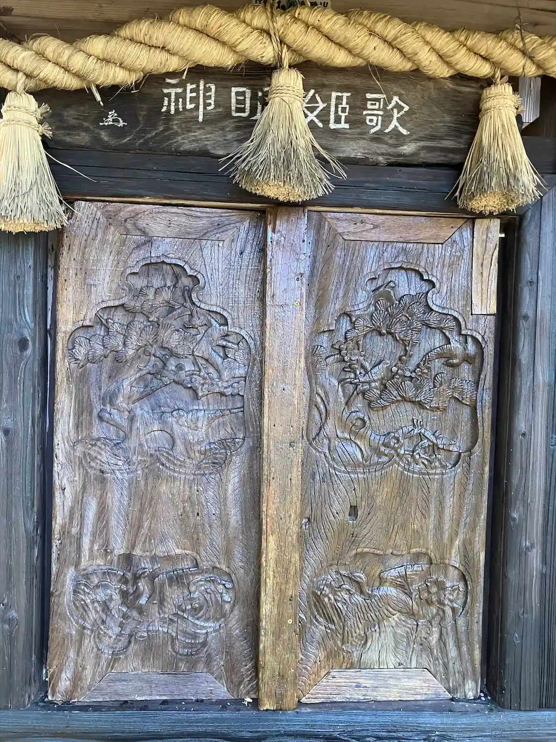 社殿の扉には彫刻が刻まれてました