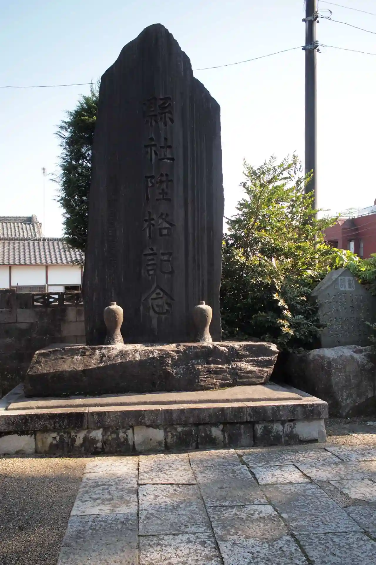 参道を進んで右側、二の鳥居近くにある<結城市戦没者 慰霊碑>。一段高い塀で囲まれた場所に、丁寧に祀られている。
