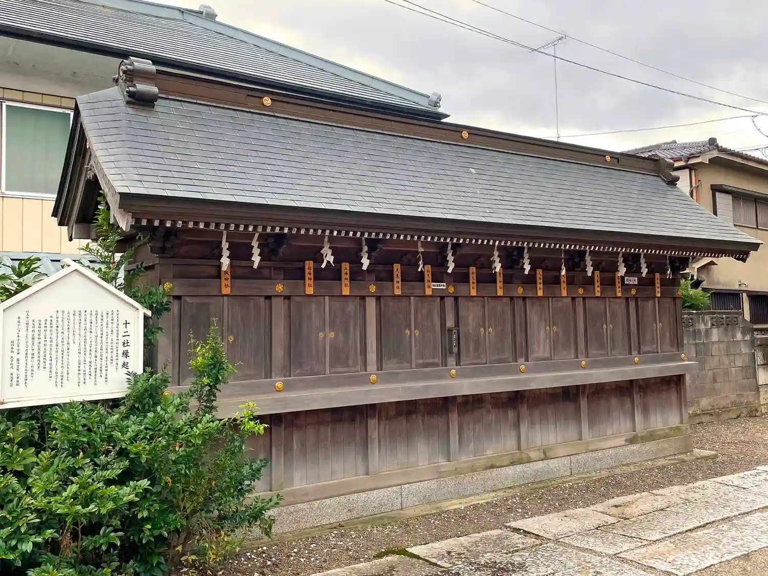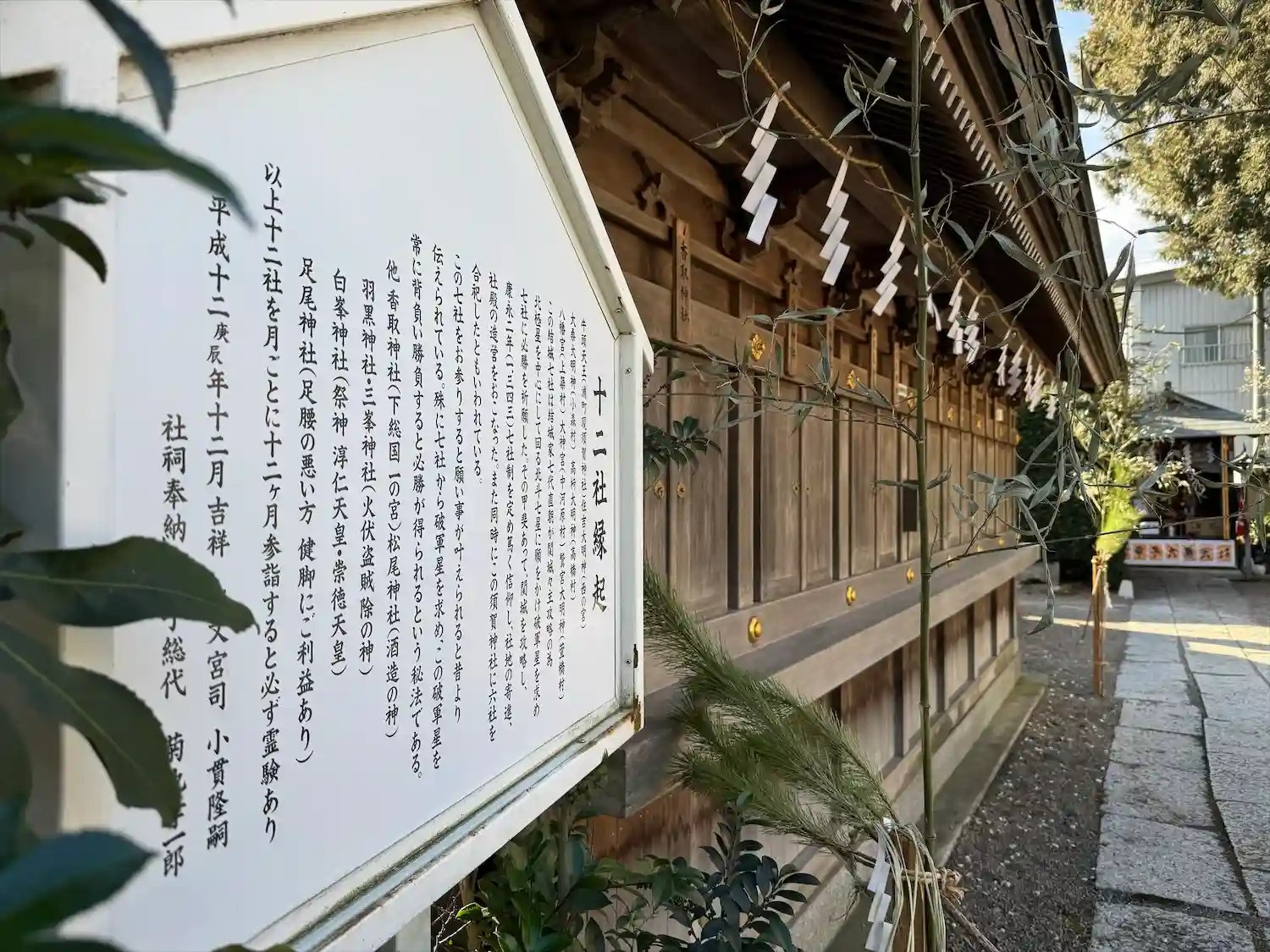 拝殿の左手にある<十二社>。室町時代は<結城七社>といい、領主・結城直朝が戦勝祈願をして願いが叶い、以後篤く信仰したとのこと。