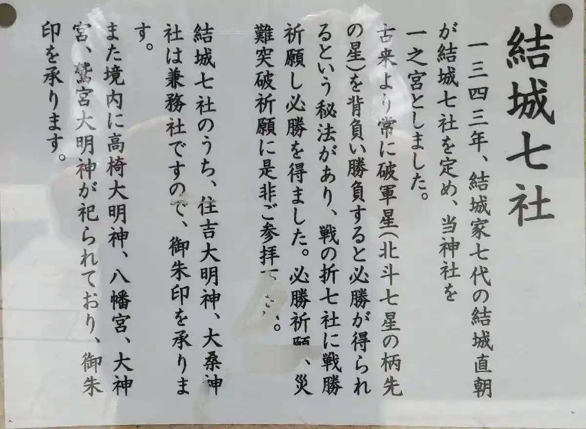 茨城県結城市に鎮座する神社である。