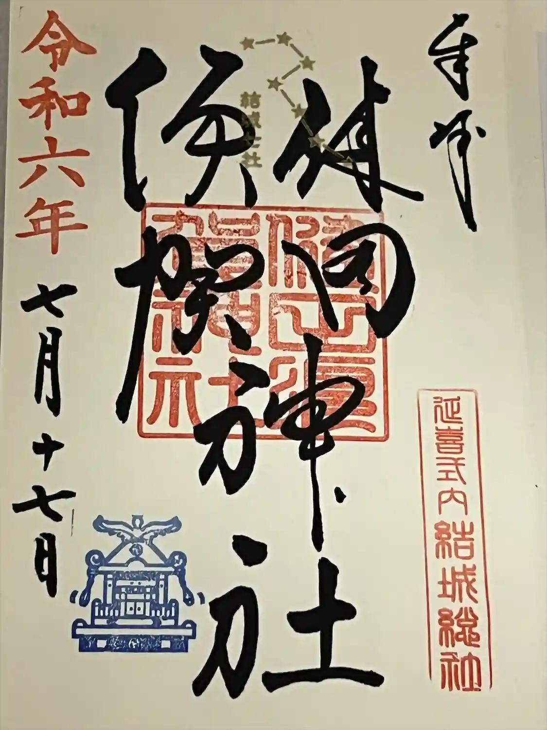 健田須賀神社の書き入れ御朱印
