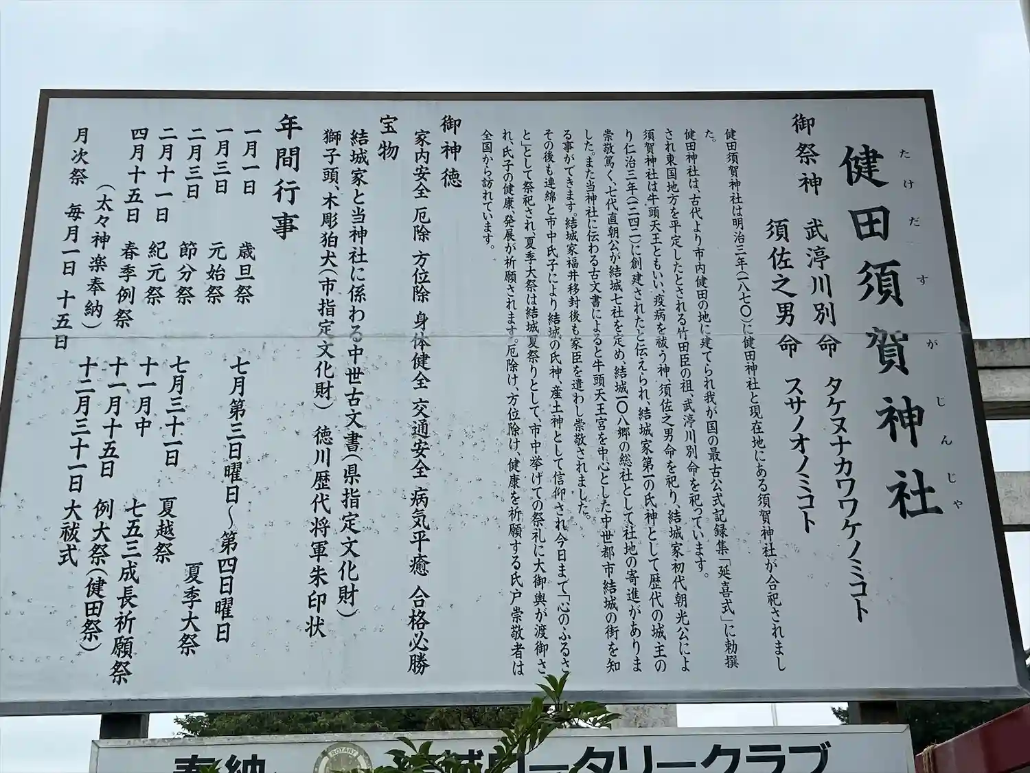 明治時代に「健田神社」と「須賀神社」を合祀したもので、健田神社…