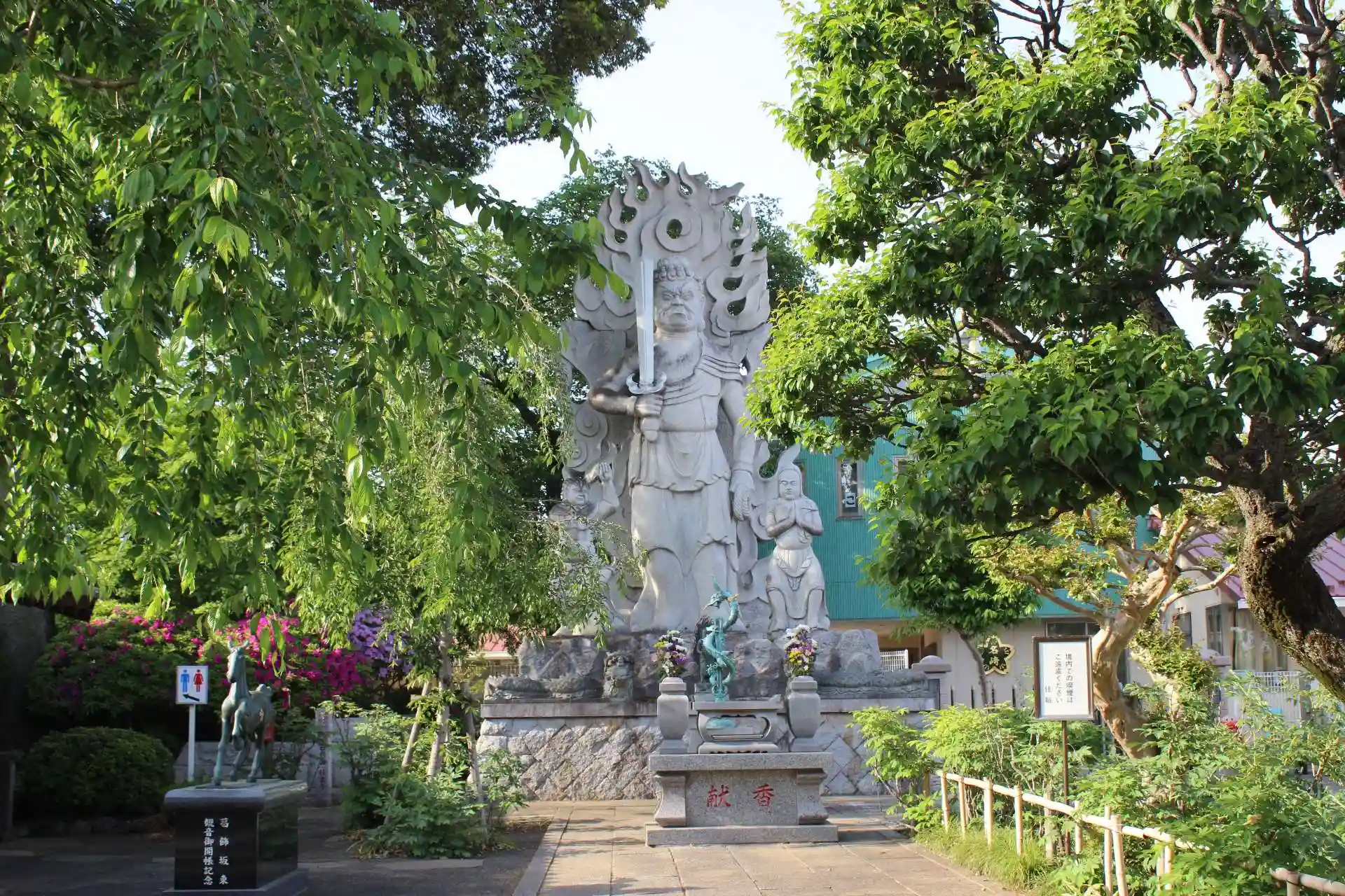 御本尊は不動明王で、山門をくぐると大きな不動明王像がある