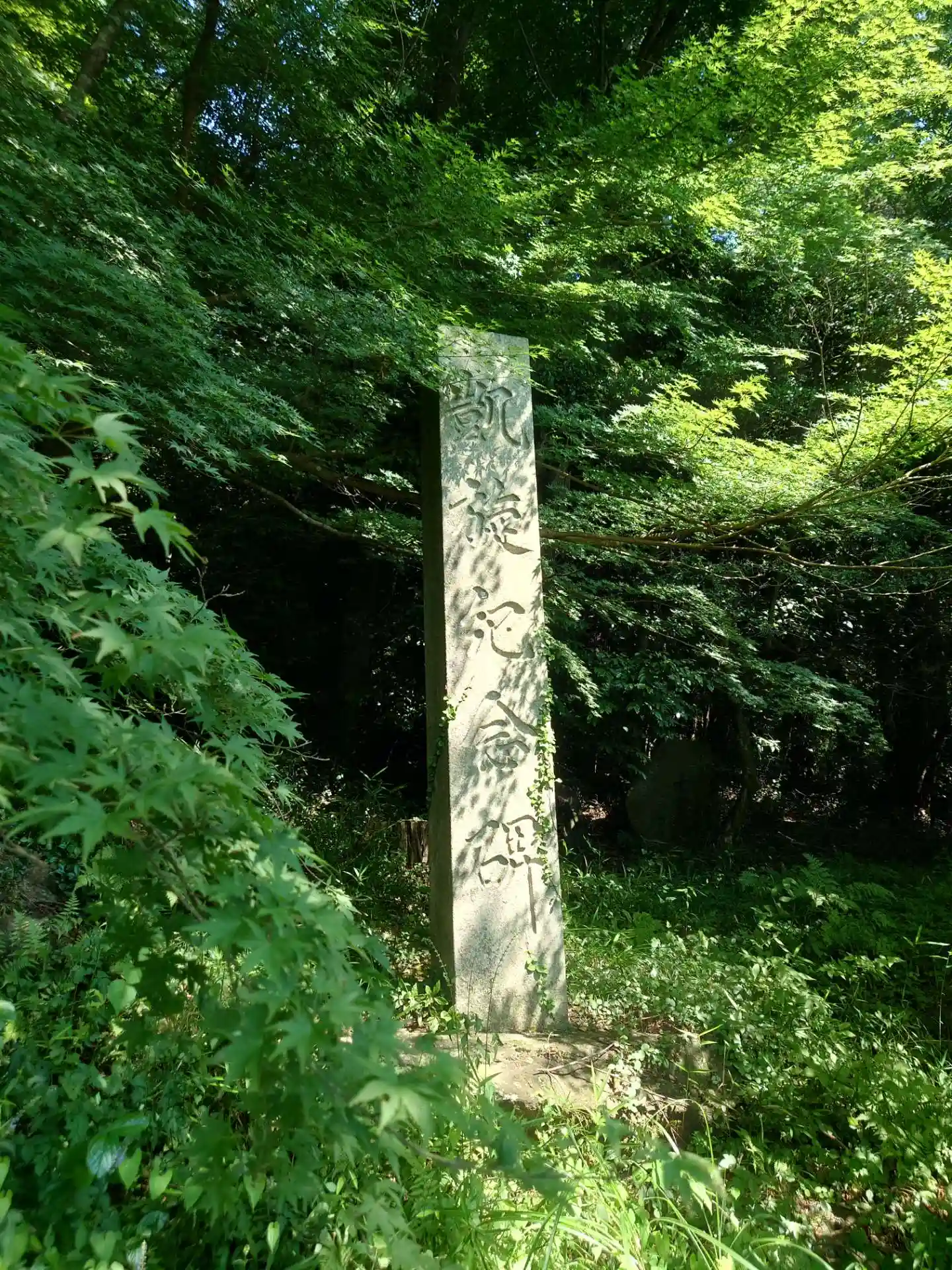 石碑が倒れかかっててロープで吊ってある((( ;゚Д゚)))