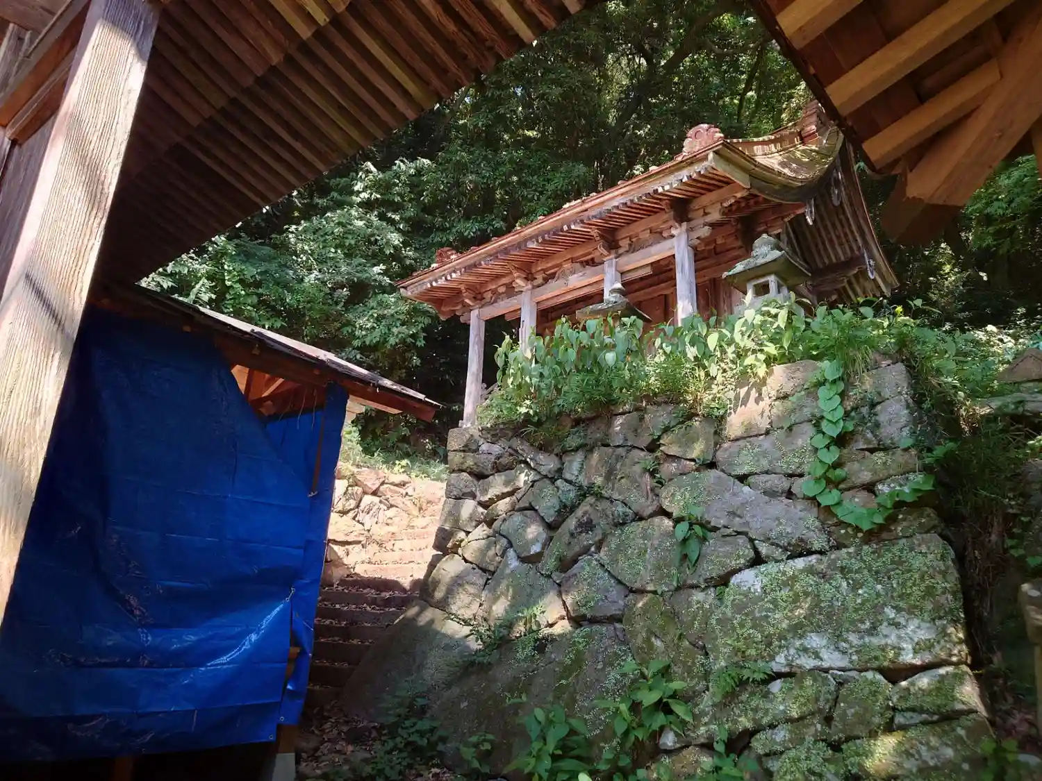 古い石段は苔むしています