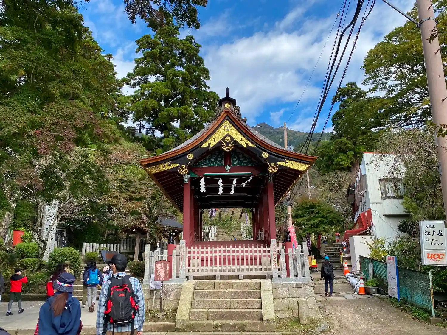 神社自体はケーブルカー乗り場の下にあります。ケーブルカーは男体山の頂上に近く、ケーブルカーの終点か…