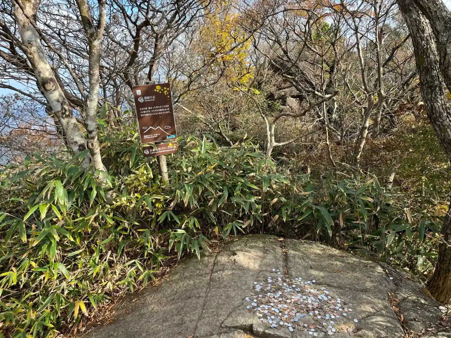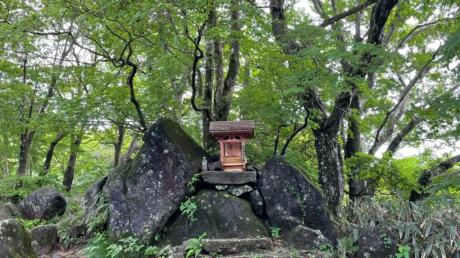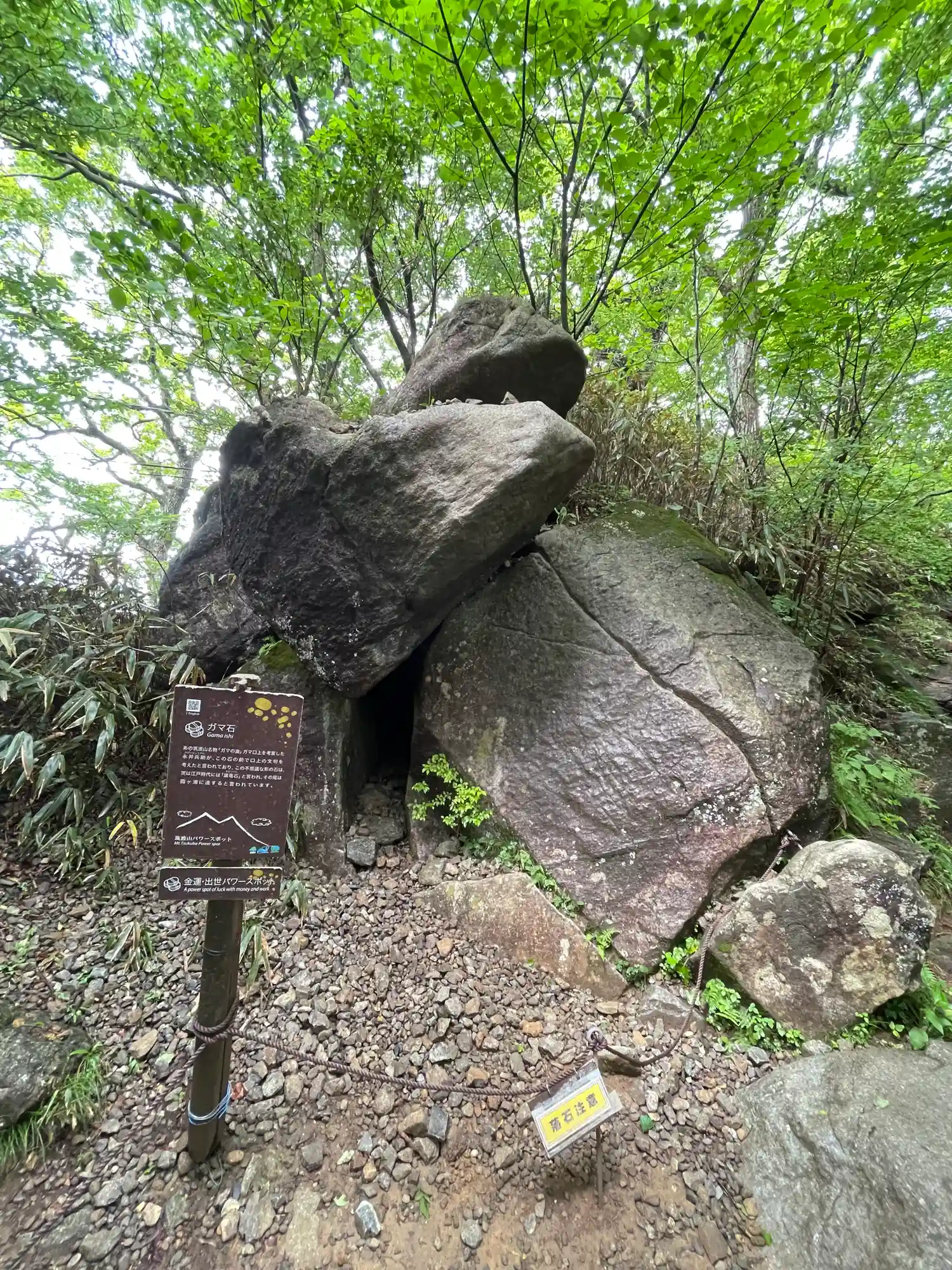 女体山から男体山へ向かう途中にあるイザナギ・イザナミゆかりのせきれい石。