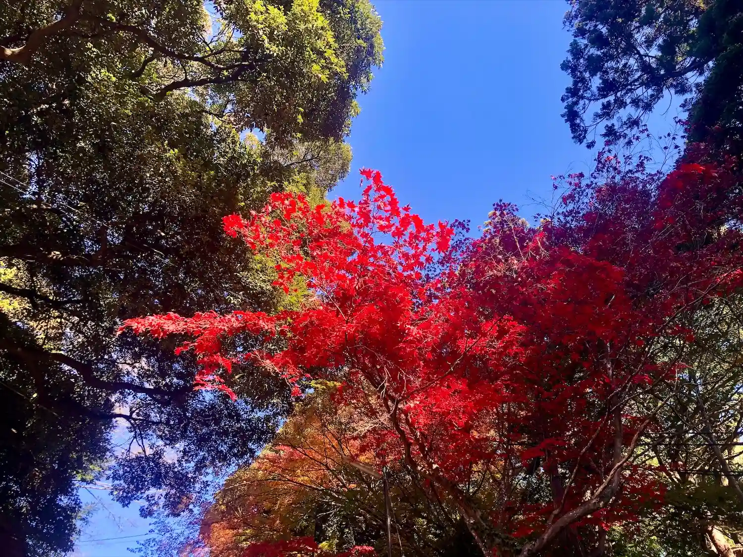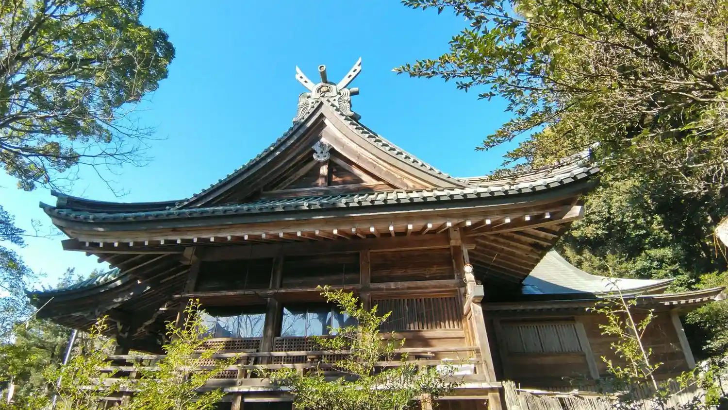 空は綺麗なブルー、社殿はパワーを感じました…