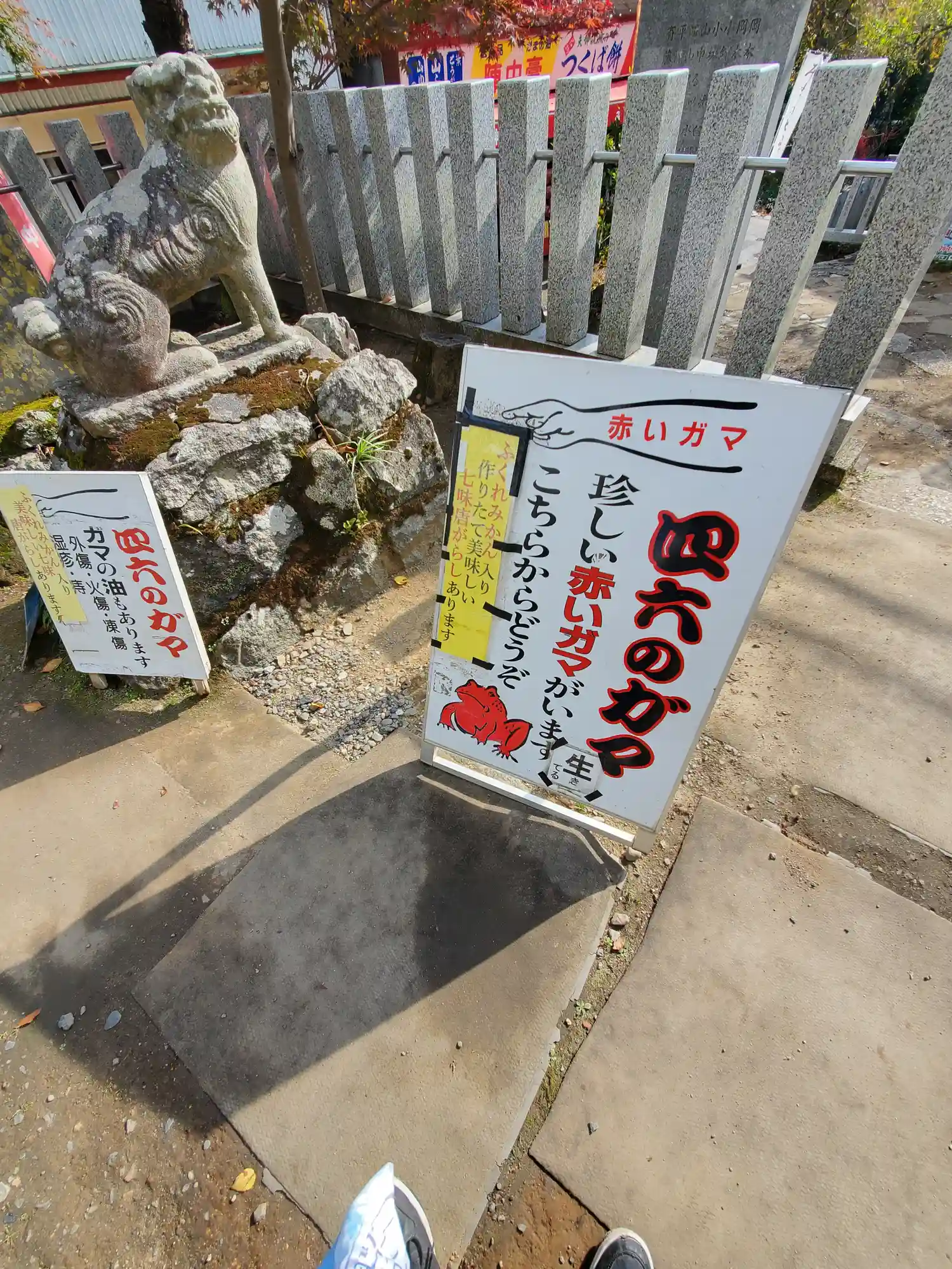 随身門横の広場ではがまの油売りのデモンストレーションをしておられました。