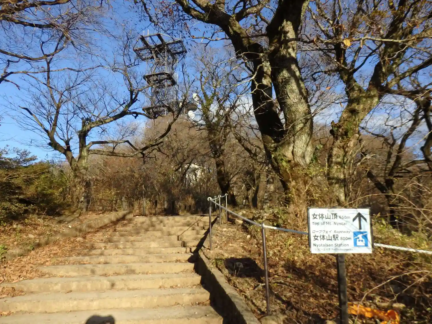 御幸ケ原はケーブルカー駅、女体山頂付近がロープウェイ駅方面です。