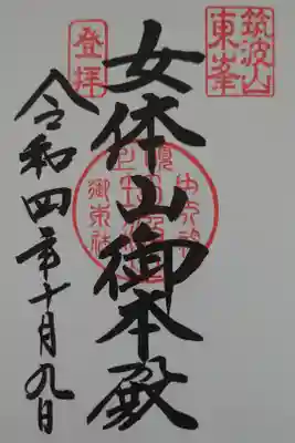 筑波山神社 女体山御本殿の御朱印 写真一覧