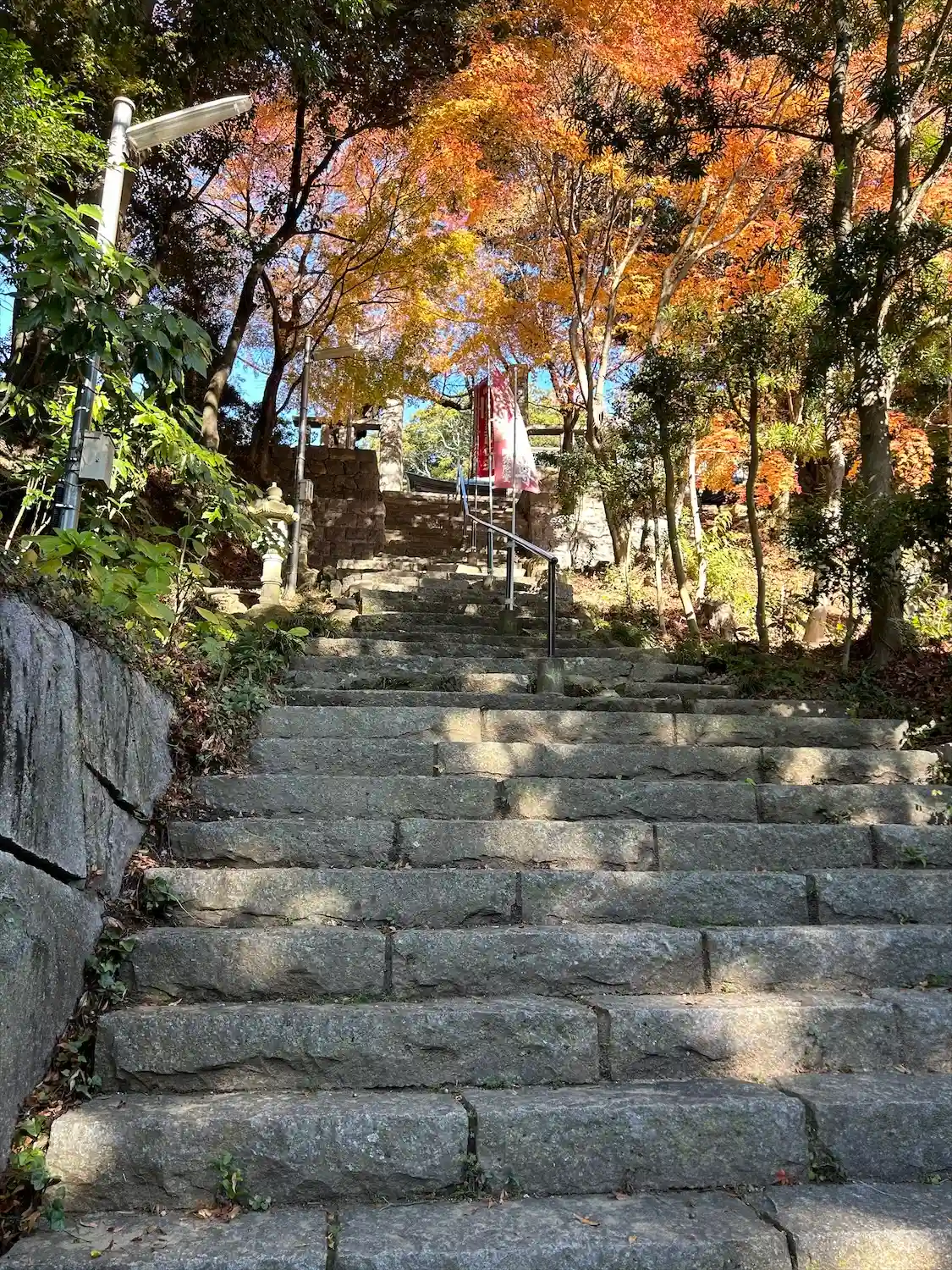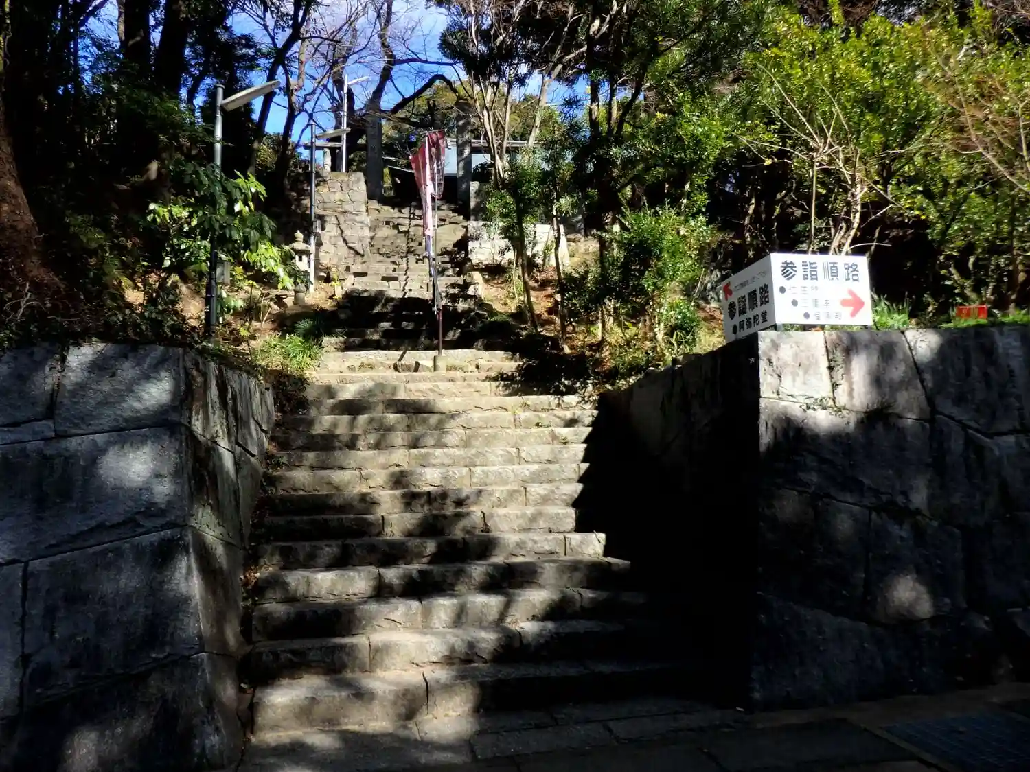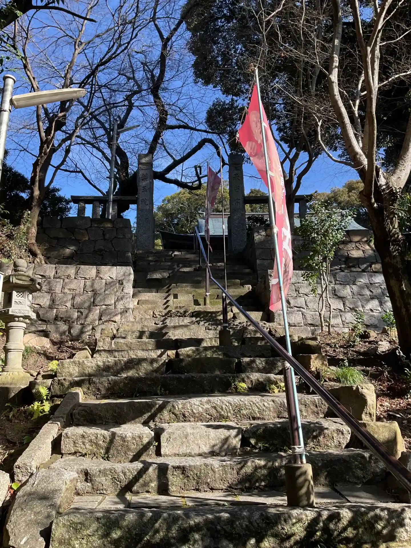 山門から境内へ上がる階段は急なので、足元に十分注意して。