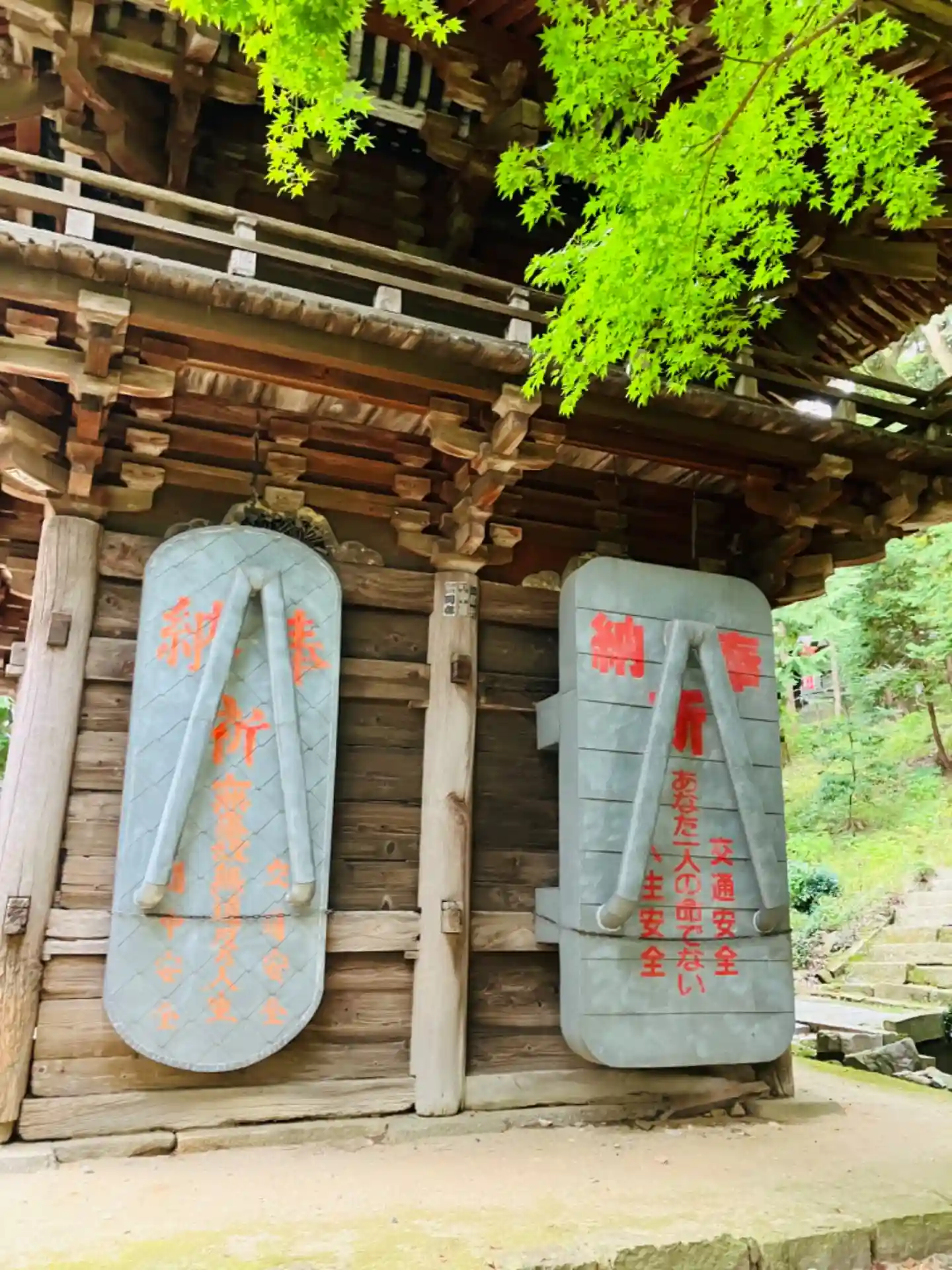 阿弥陀堂から少し歩くと山門(仁王門)です。登山の安全を祈願して、大草鞋が奉納されていました。