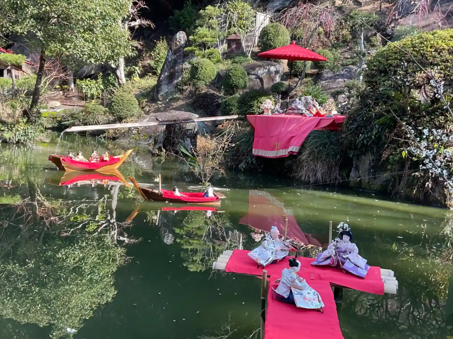 ここで、ひな祭りで舟にお雛様を乗せて浮かべるそうです。ふーりゅーだなぁ