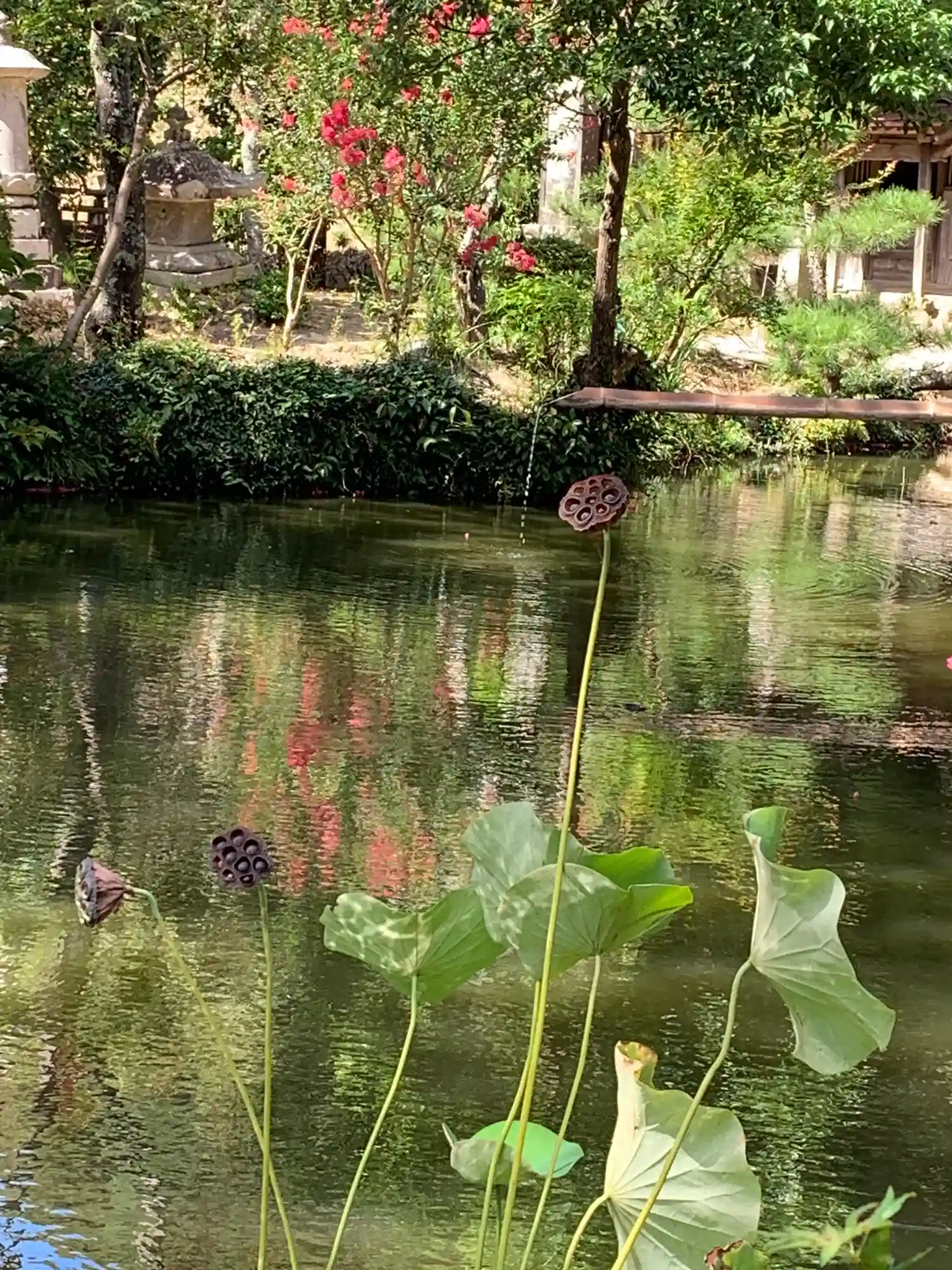 先終わった蓮が池に映って素敵です。